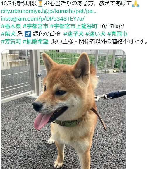無事お家に帰れた様です🎉 皆様、ありがとうございました✨ #栃木県 #宇都宮市 #迷子犬 #迷い犬 #柴犬 pic.x.com/R4krrnvoXz