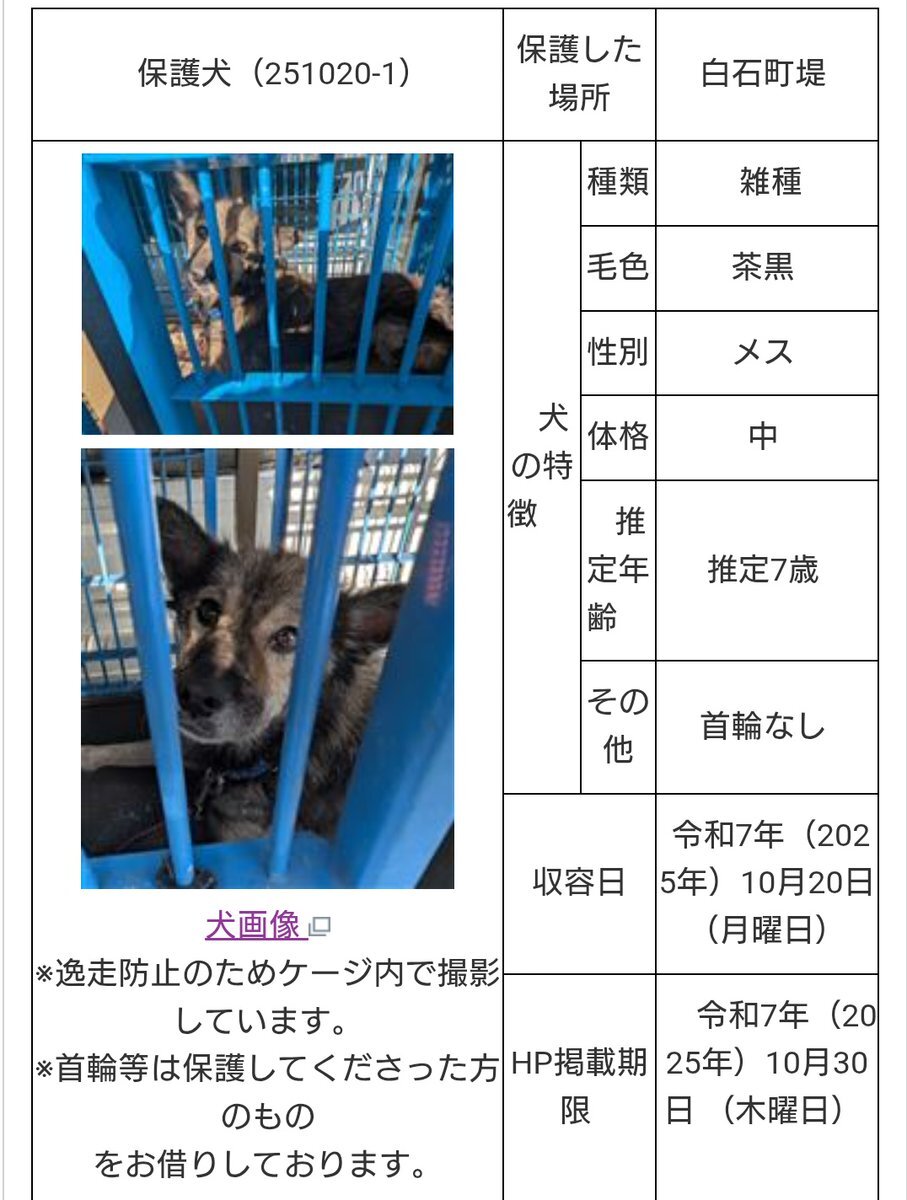 #保護犬 #迷い犬 #福島市岡部 2025年10月20日16時半頃 、福島市岡部のまるいちフードセンター付近で道路を横断していて危ないので保護しました。 pic.x.com/r94hISmJLt