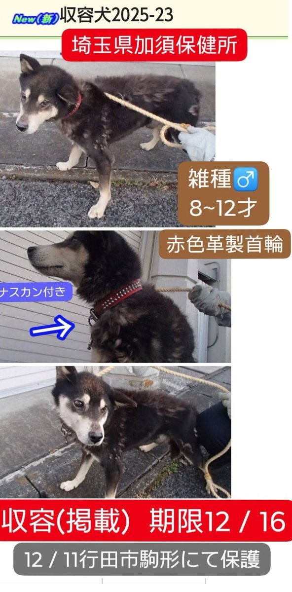 まだお迎えないようです 埼玉県のみならず 他県の方も確認を #迷子犬 #迷い犬 12/11 #埼玉県 #埼玉県迷子犬 #行田市 #駒形 保護 #行田市迷子犬 #雑種犬 オス 黒白 #黒柴 風 📍革製赤色首輪 📍ナスカン付き 📍推定8歳〜12歳 行田市 加須市 羽生市 🔴連絡先🔴 #加須保健所 ☎0480-61-1216 pic.x.com/XgYfKfhe7C x.com/CLASSICLETSFOL…