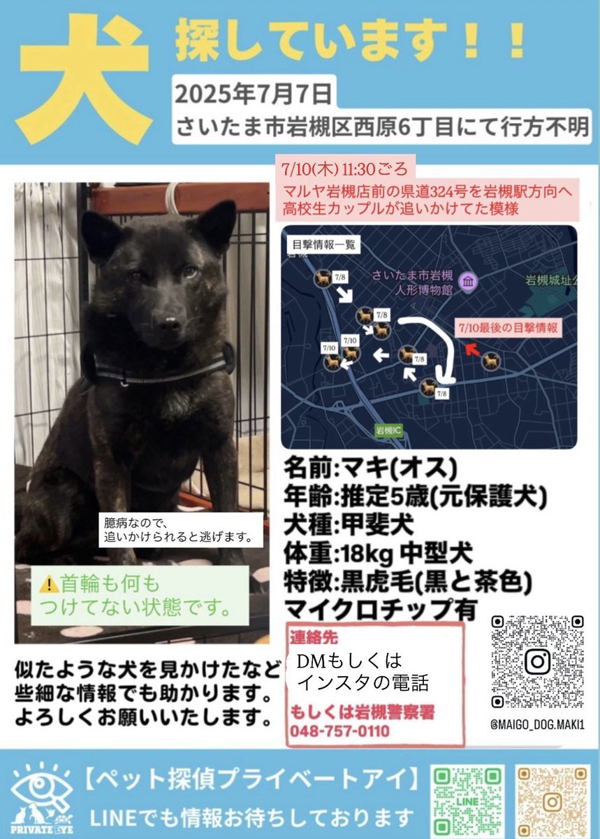 ◇迷子犬探してます【埼玉県さいたま市岩槻区西原|2025年7月7日(月) 17:00すぎ】マキくん |ハピわん!迷子犬センター hapiwan.jp/missingdogs/70… #迷子犬 #迷い犬 #ハピわん #犬 #ワンコ #拡散希望 #迷子犬センター 🐶🆘埼玉県〝マキ君♂〟 x.com/naho_lc_bos/st…