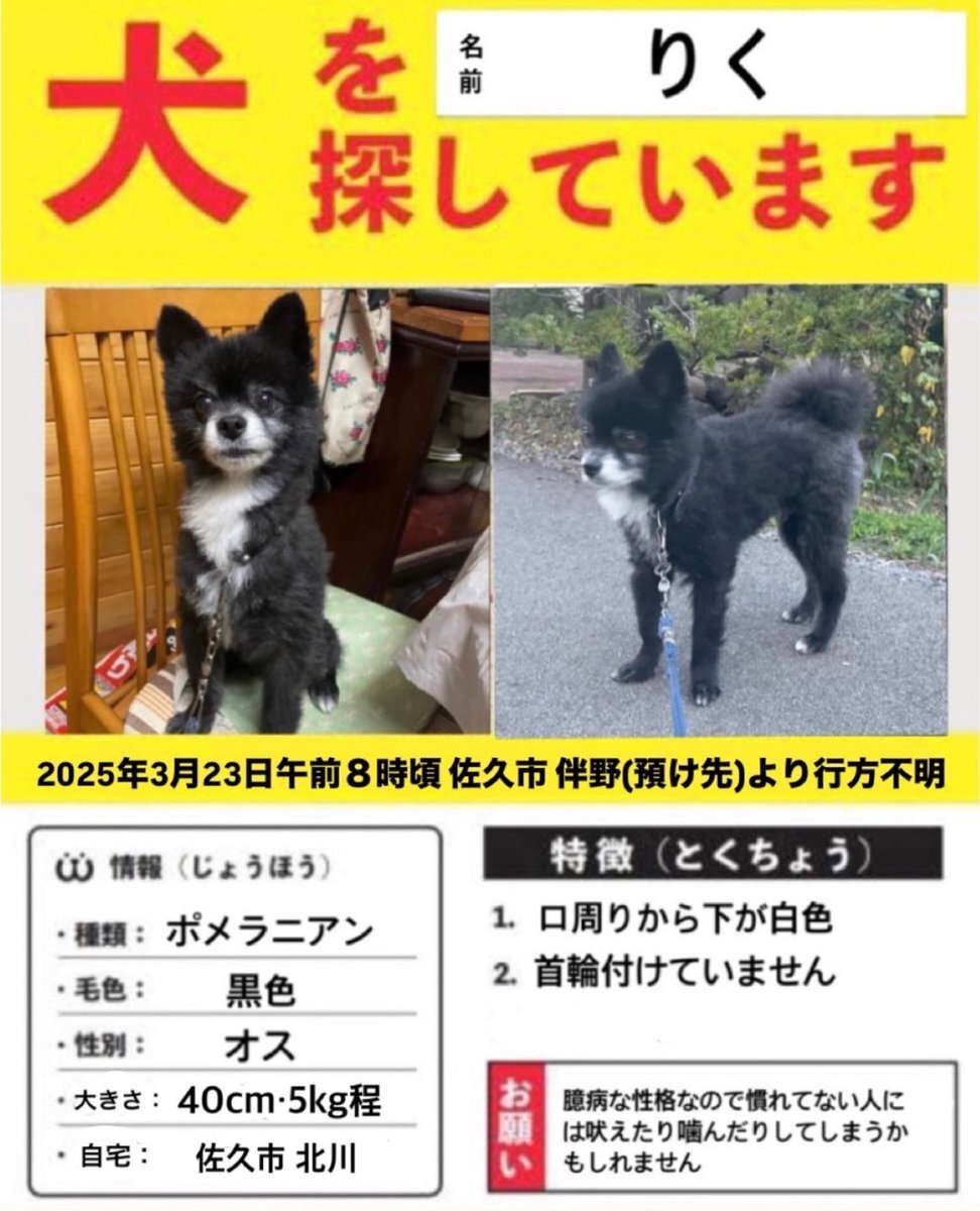 #拡散希望 🙏ご存知のワンちゃんに似たコいませんか❓️ 【#長野県迷子犬】 #黒い犬 #ポメラニアン迷子 🐶りく君🐶 #迷子犬 #迷い犬 #保護犬 🟡2025/3/23迷子 #長野県 #佐久市 #伴野 📢#目撃 #保護 些細な事でもあれば引用元様迄ご連絡を🙇 x.com/gJys5Qf84e9590…