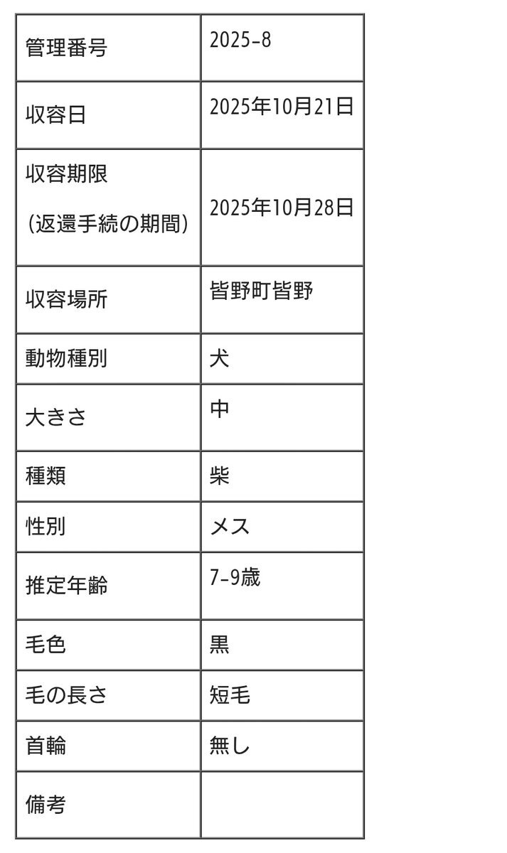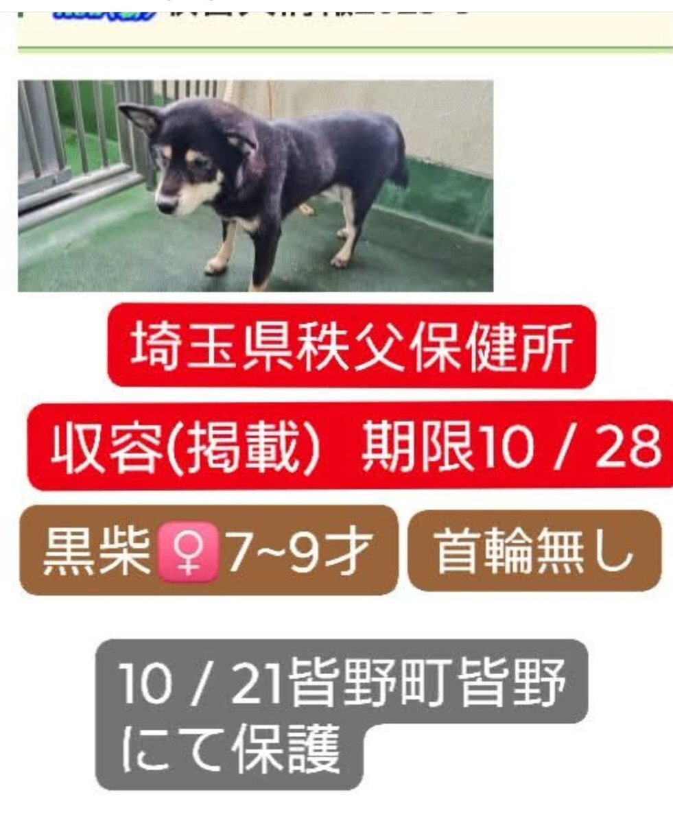 拡散希望📣📣📣 #迷子犬 #迷い犬 10/21 #埼玉県 #皆野町 皆野 #埼玉県迷子犬 #柴犬 #黒柴 メス 黒 📍推定7歳〜9歳 📍装着品なし お心当たりある方は保健所まで 秩父市 皆野町 横瀬町 長瀞町 小鹿野町 🔴連絡先🔴 #秩父保健所 ☎0494-22-3824 pref.saitama.lg.jp/b0713/syuuyouj…