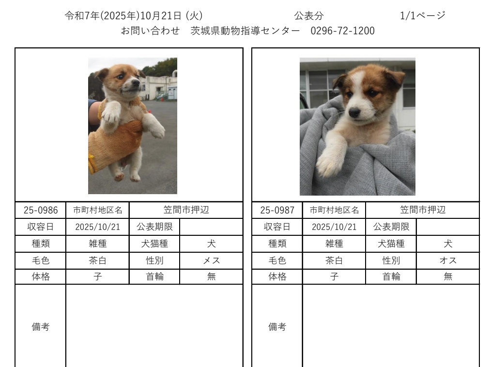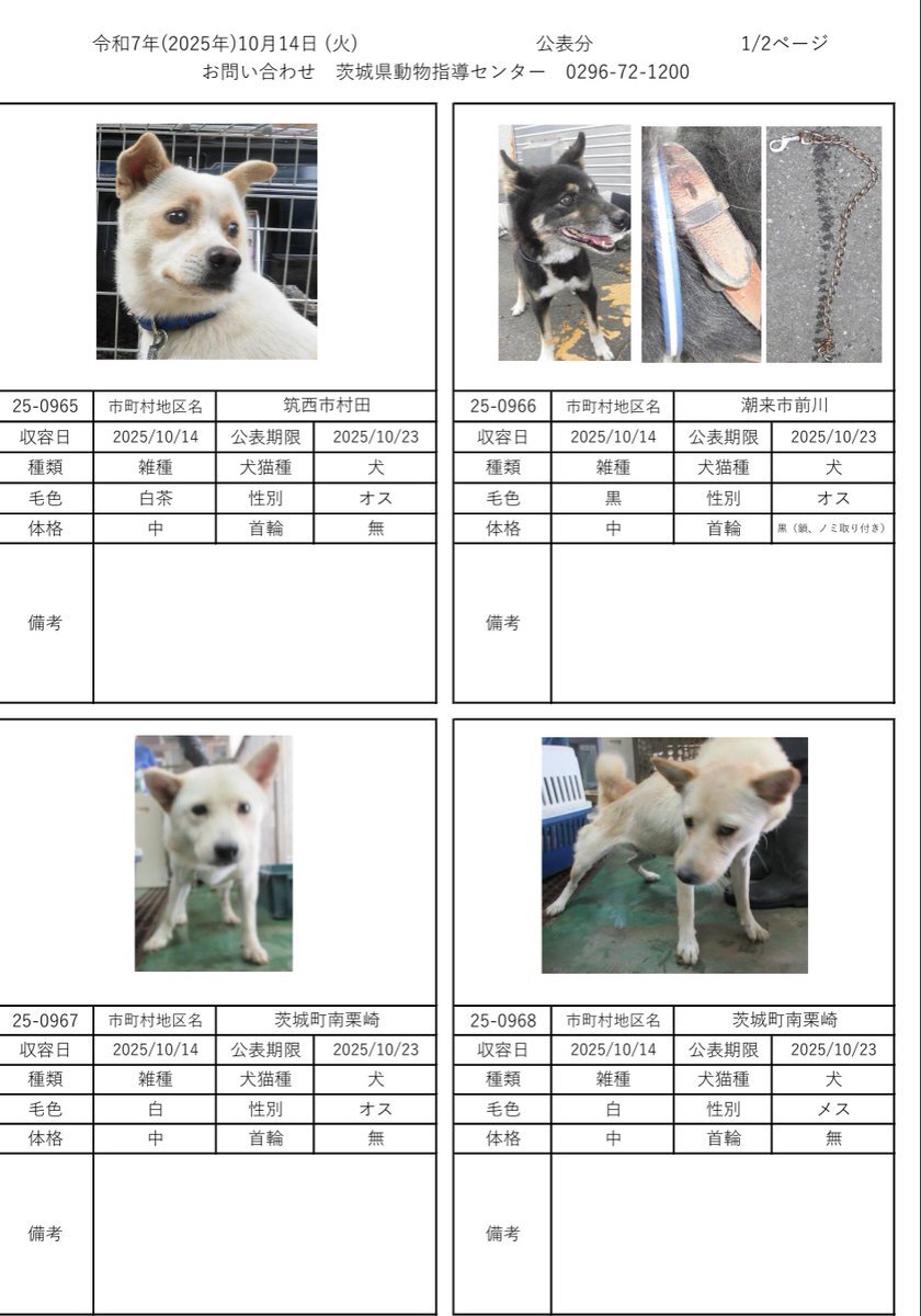 犬ちゃん達が保護されています お心当たりのある飼い主さまはご確認ください #迷子犬 #迷い犬 #保護 #白黒茶 #雑種 #ミックス #茨城動物指導センター #拡散希望 x.com/omitama_kankyo…