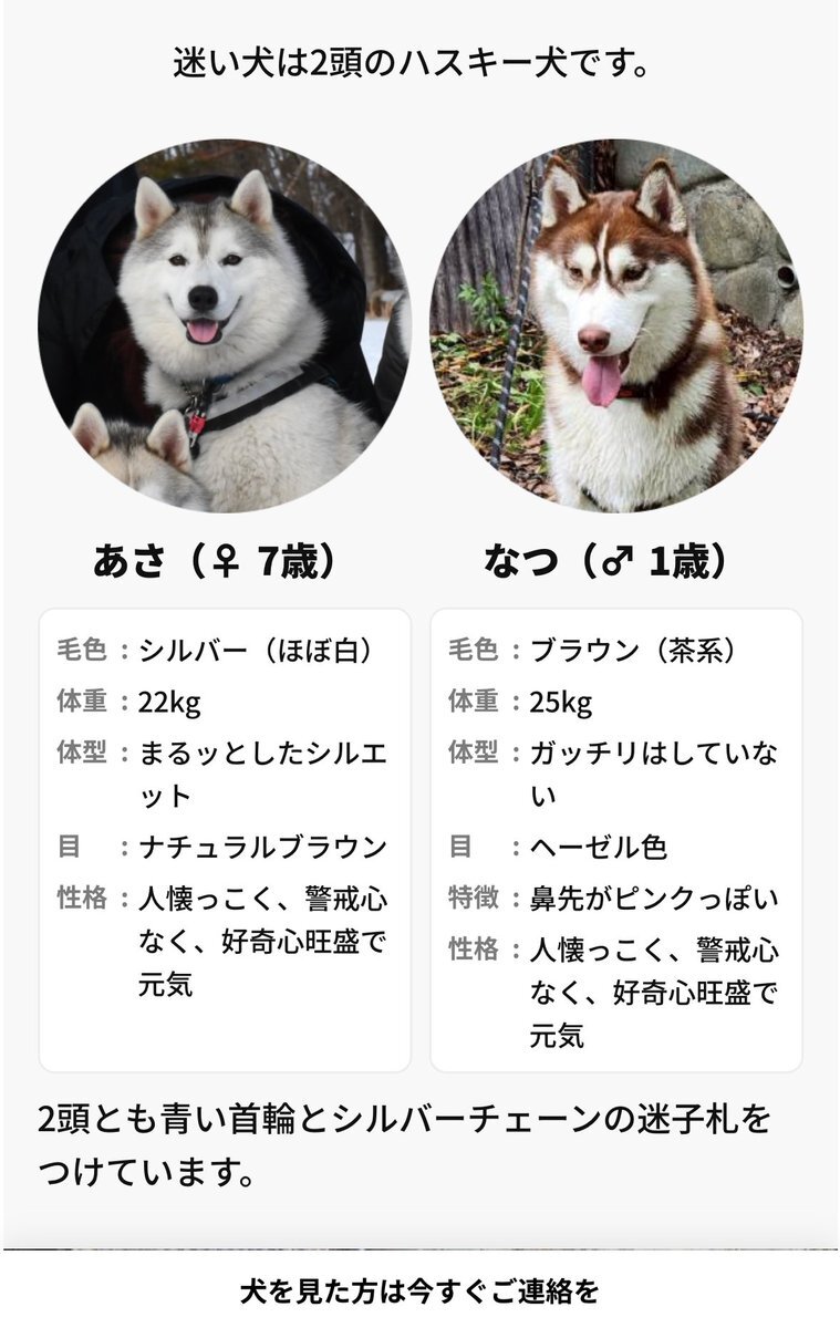 栃木県で迷子になってしまったハスキー2頭。 何か情報ありましたらよろしくお願いします。 asa-natsu.studio.site #栃木県 #迷子犬 #ハスキー #迷い犬 pic.x.com/pfRwEGmmn8
