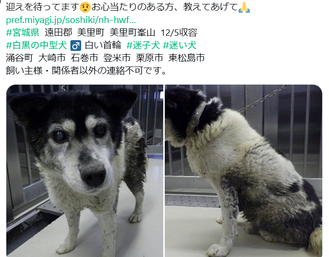 この子を見かけた方いませんか? 些細な事でも構いませんので何か情報がありましたらご連絡お願いします 見かけた際は早急に警察か飼い主へ連絡し来てもらって下さい 保護に来るまで時間が許す限り見失わないようお願いします 寒さ事故など心配 #秋田県横手市 #横手 #秋田県 #拡散希望 #迷い犬 #迷子 x.com/sizen_seikatu/…