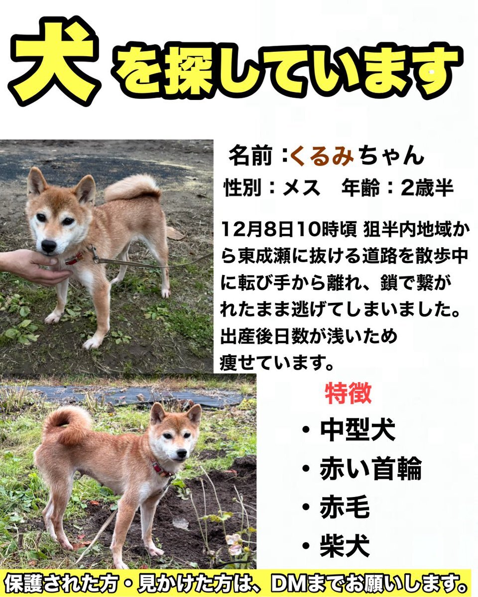 🚨#迷子犬 #迷い犬 #秋田県 #横手市 #柴犬迷子 #柴犬 #赤柴 #柴犬秋田 ⚠️鎖 チェーンリードをつけたまま迷子になっています! 2025.12.8🗾秋田県横手市増田町 狙半内地域~東成瀬 柴犬 赤毛 中型♀くるみちゃん 赤い首輪に鎖あり 2歳 目撃,保護された方は🔽ご連絡お願いします🙇♀️ x.com/xoxo_O7s/statu…