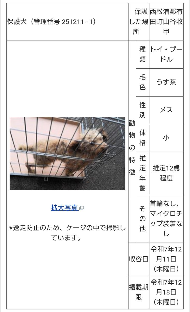 拡散希望📣📣📣 #迷子犬 #迷い犬 12/11 #佐賀県 #佐賀県迷子犬 #西松浦郡 #有田町 #山谷牧 甲 #トイプードル メス うす茶 📍装着品なし 📍MCなし 📍推定12歳位 伊万里市 西松浦郡 🔴連絡先🔴 #伊万里保健福祉事務所 ☎0955-23-2103 pref.saga.lg.jp/kiji00334505/i…