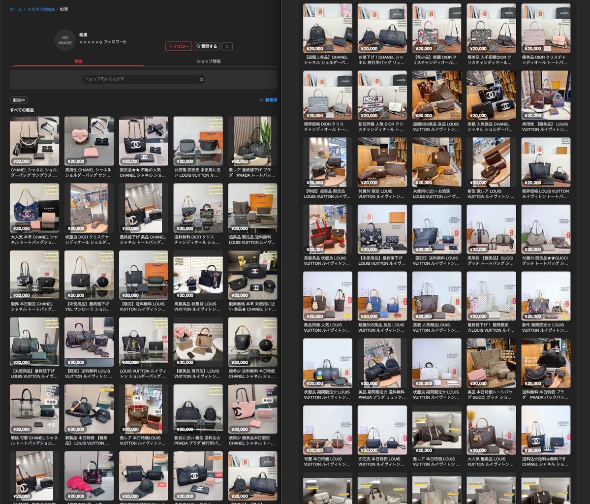 WTO出店再開💩メルカリshops 偽物王 jp.mercari.com/shops/profile/… @mercari_jp @mercari_sg @mercarishops 対策突破されてますかね🤪 @abeshokai1948 貴社情報でメルカリ偽物ショップ登録されてます⚠️ #メルカリ #メルカリShops #偽物 #ハイブランド #シャネル #ルイヴィトン #セリーヌ #fake #通報 pic.x.com/dlcDoXtMBq