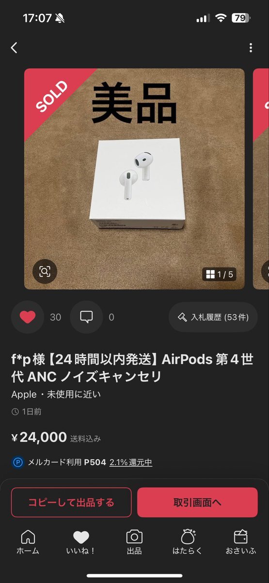 【拡散希望】 メルカリにて偽物のairpods4を販売し、そのまま購入者をブロック、他コメント出来ないように出品商品を全て非表示にしているコイツ。 みんなで通報手伝ってくれませんか? @ShinjukuSokai さん 拡散手伝っていただけたらな。。 #メルカリ #通報 #airpods4 jp.mercari.com/item/m23186884… pic.x.com/0lpyVHc3FY