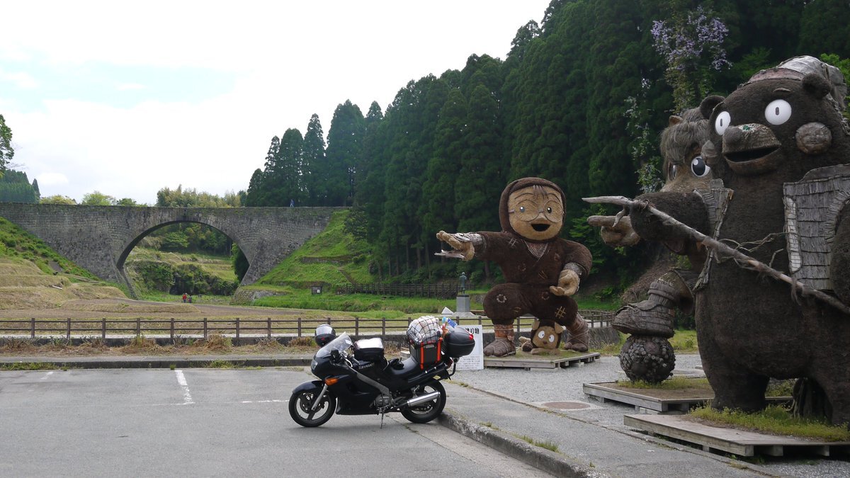 九州ツーリングまであと3日。 #通潤橋 に行ってから、もう11年も経つのか。この年は乱太郎/ヘムヘム、ロアッソくん、くまモンがお出迎え。昔は長旅といえば #ZZR250 を愛用してたんだけど、最近は出番が少なくなったなぁ。 #ゴールデントラバース計画 pic.x.com/62Vcb5Jvcv