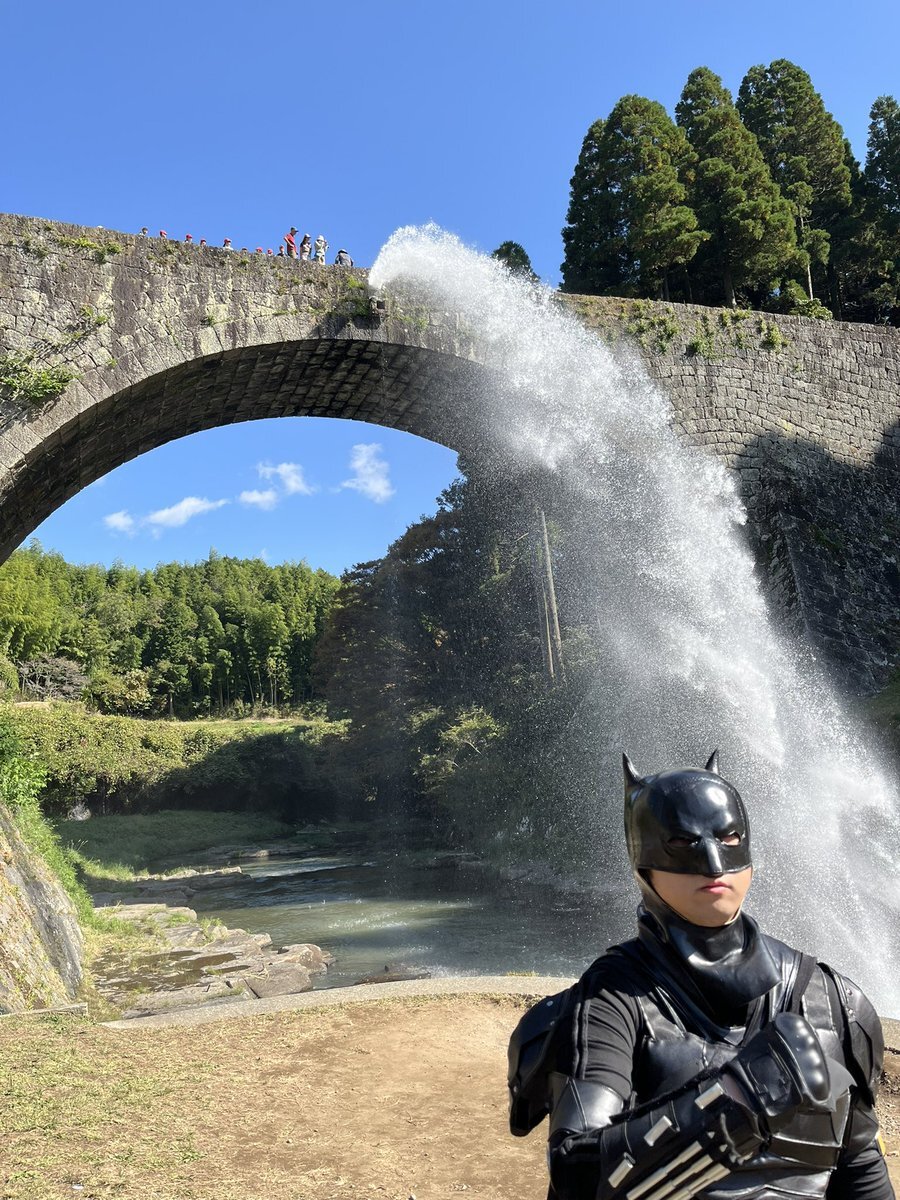 通潤橋の放水を見に行った 久しぶりに見た放水は迫力ある 山都町に来た時は是非見に来てくれ 月曜日と火曜日はお休みだ #山都町 #通潤橋 #バットマン #リアルライフヒーロー #ローカルヒーロー pic.x.com/Xgyln7EpaT