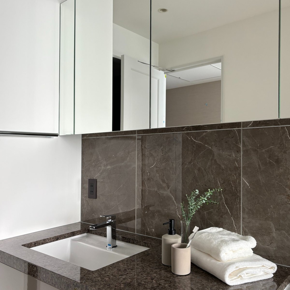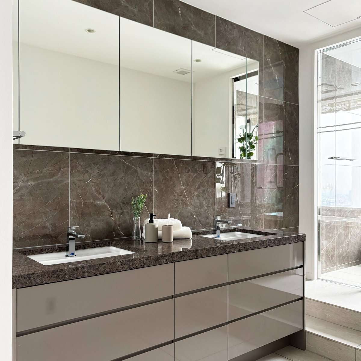 ガラス壁面越しに美しく佇むホテルライク洗面化粧台。ホワイト×ゴールドで統一感をもたせスッキリとした印象に。カウンターと洗面ボウルが一体型なので清掃性も兼ね備えています。 wailea-club.com/interior/powde… #新築 #リノべーション #リフォーム #洗面所 #洗面台 #造作洗面台 #人工大理石 #ホテルライク pic.x.com/l27dddaaE1