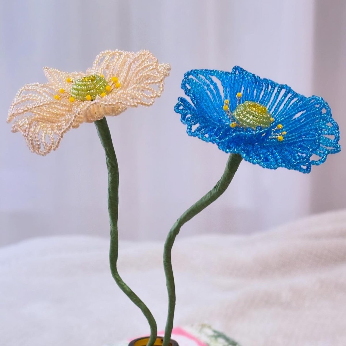 ポピーとカモミールをモチーフにしたビーズフラワーアート✨ ガラスビーズならではの透明感と輝きが、空間を優しく彩ります。 枯れないお花で、長く楽しめる贈り物にも🌼 creemaにて販売中です♪ ▼ creema.jp/item/19943926/… #ビーズアート #フラワーインテリア #ビーズフラワー #造花