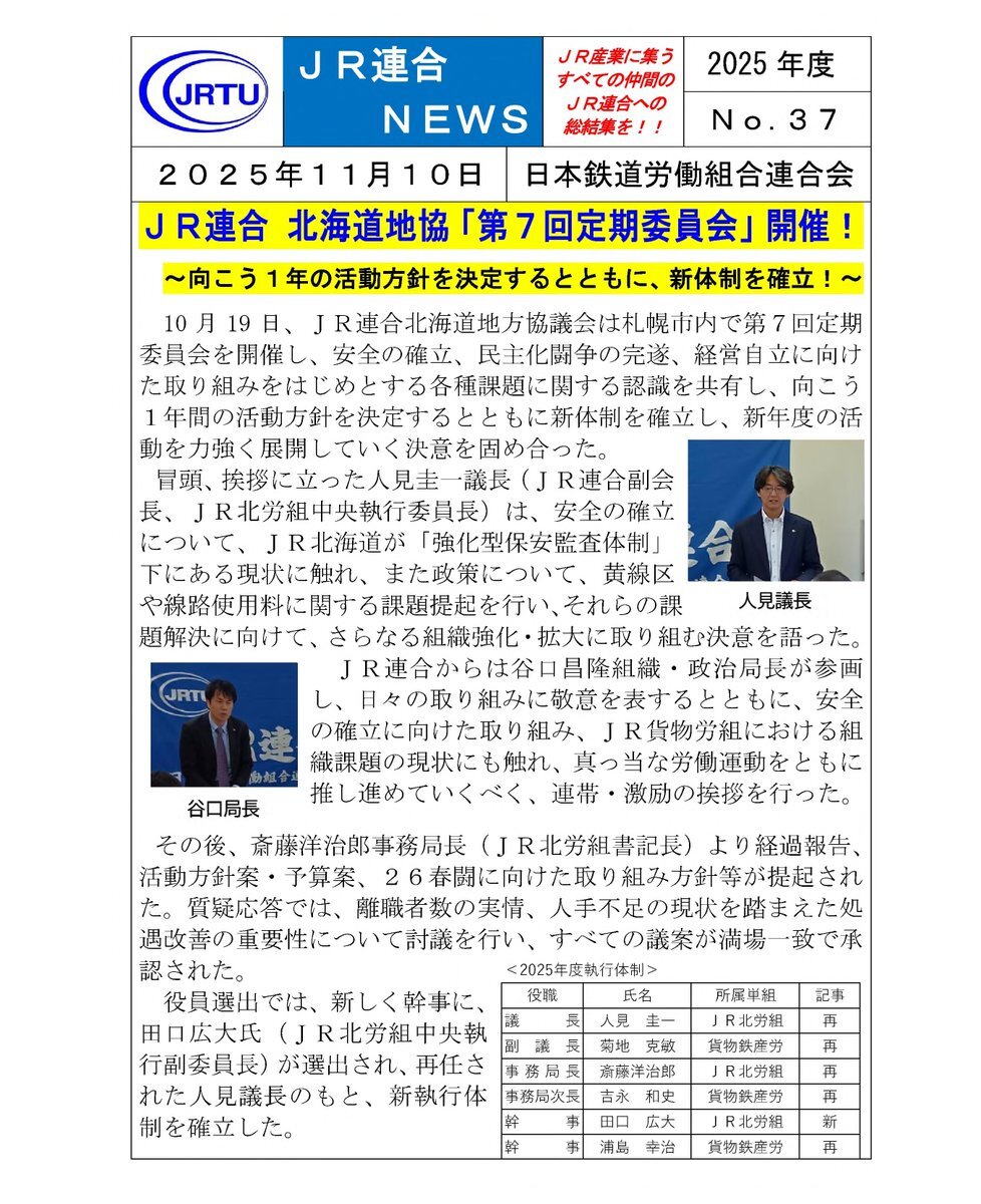 「JR連合NEWS」No.37を発信しました! 【JR連合 北海道地協「第7回定期委員会」開催!】 HP→「JR連合」で検索! jr-rengo.jp/news.html #JR北海道 #JR東日本 #JR東海 #JR西日本 #JR四国 #JR九州 #JR貨物 #JR連合 #連合 #交運労協 #KeyWorkers pic.x.com/xyPmWesQS7