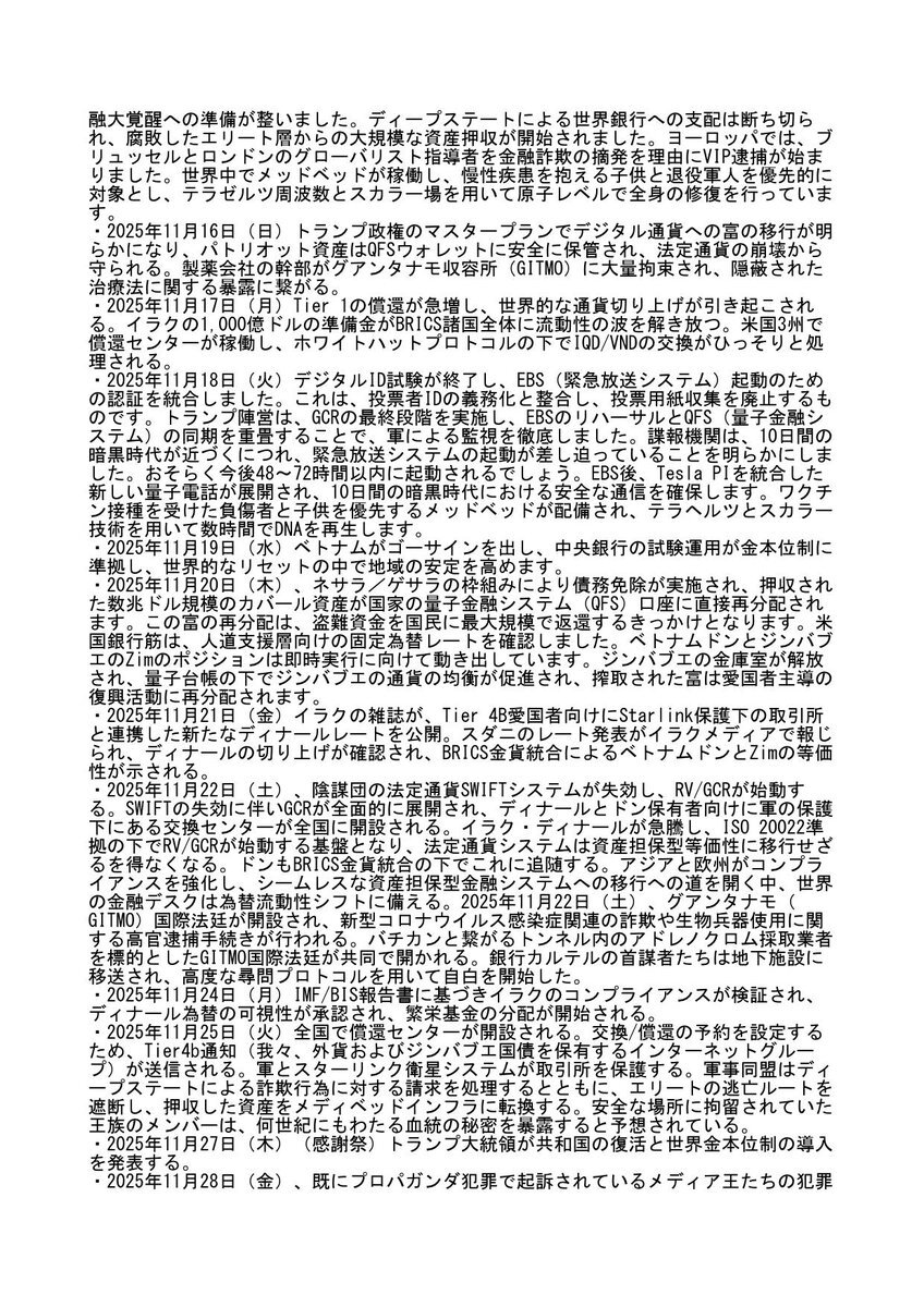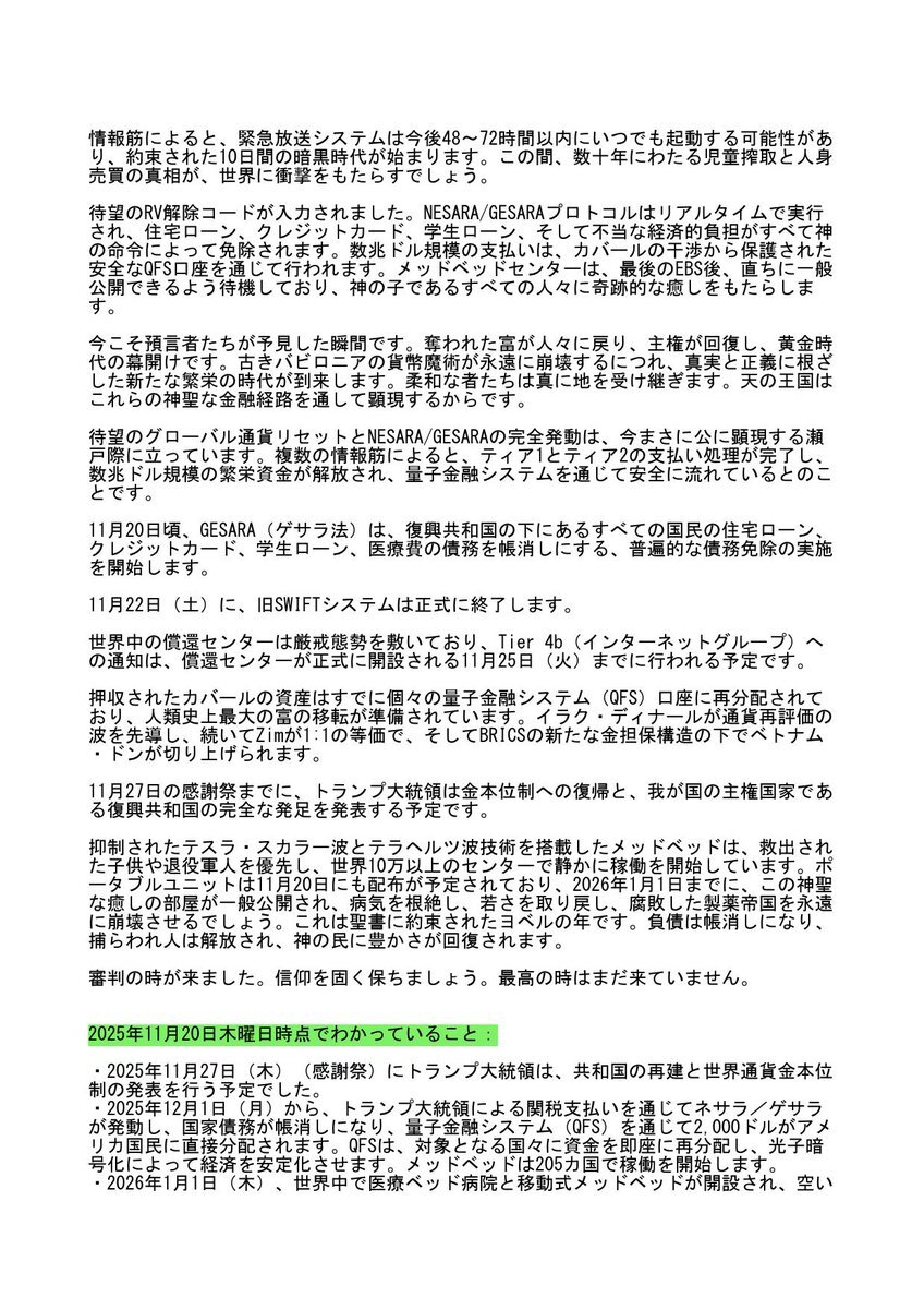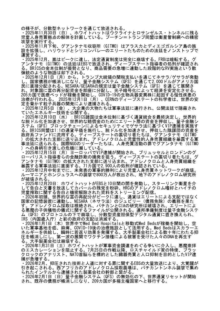 (2/2) #トランプ大統領 #EBS #QFS #GESARA #ディープステート #エプスタイン #軍事法廷 #メドベッド #人身売買 #ワクチン #都市伝説 #メディア #陰謀論 #逮捕  🚨🚨お願い🚨🚨 当アカウントは厳しく監視されてます。フォローが削除され、良いねも殆ど付かず、アクセス数も減る一方。拡散協力希望🙏 pic.x.com/f45W2vxvNo