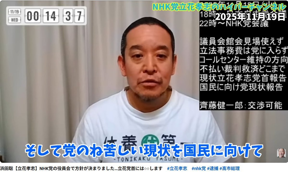 浜田聡【立花孝志】 NHK党の役員会で方針が決まりました… 立花党首には○○します  #立花孝志 #nhk党 #逮捕 #高市総理 youtu.be/9gTGEv8uHdQ?si… pic.x.com/dkW6Aueroi