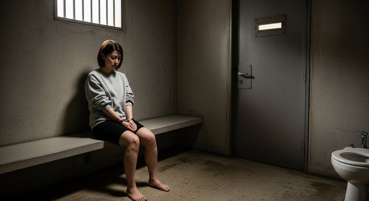 裁判所の待機室で判決を待つ女性。 これから10年間の服役が待っている。 #逮捕 #囚人服 #刑務所 #女囚 #留置場 #拘置所 #手錠 #prison #handcuffs pic.x.com/8ITwLOupBm
