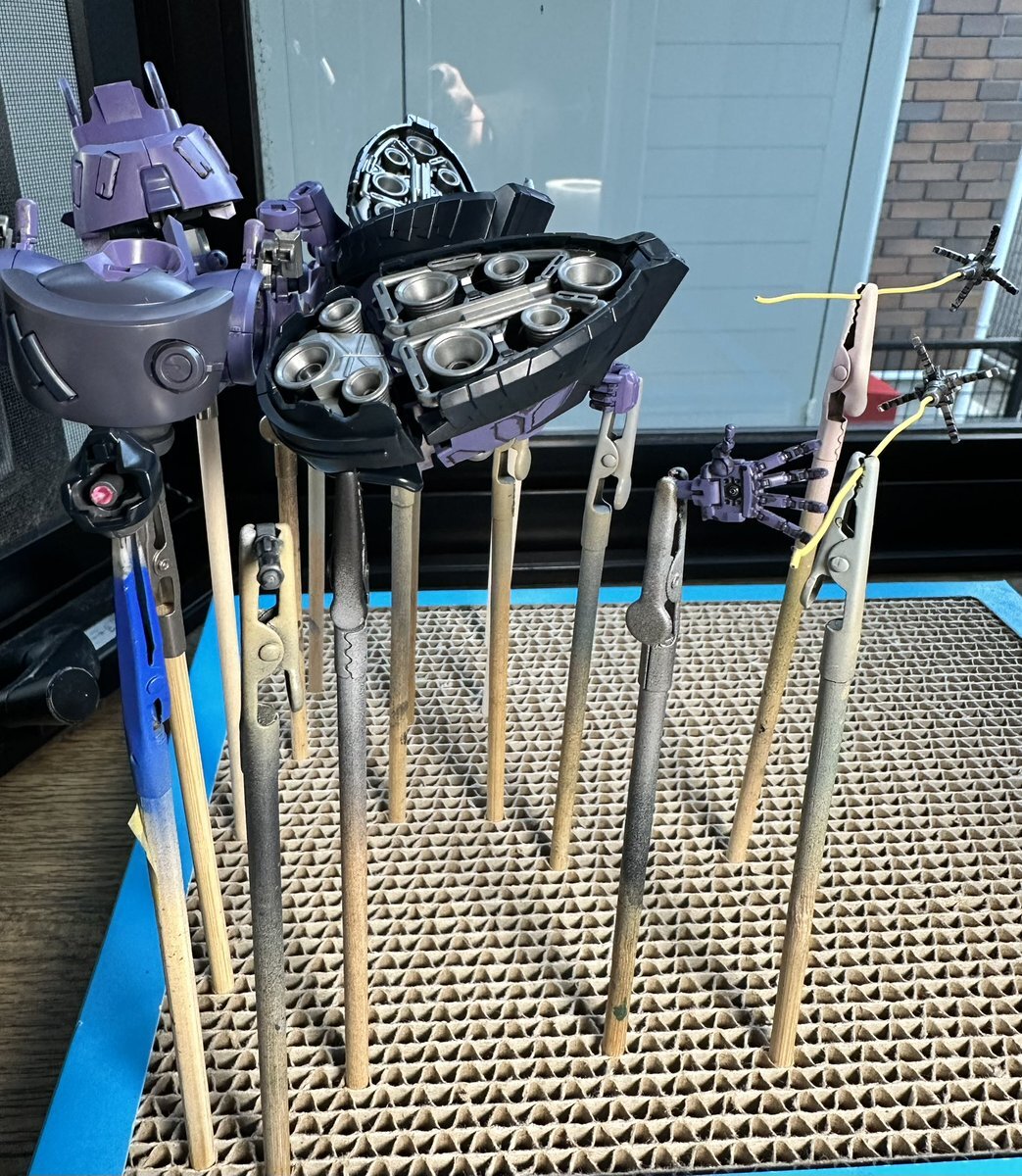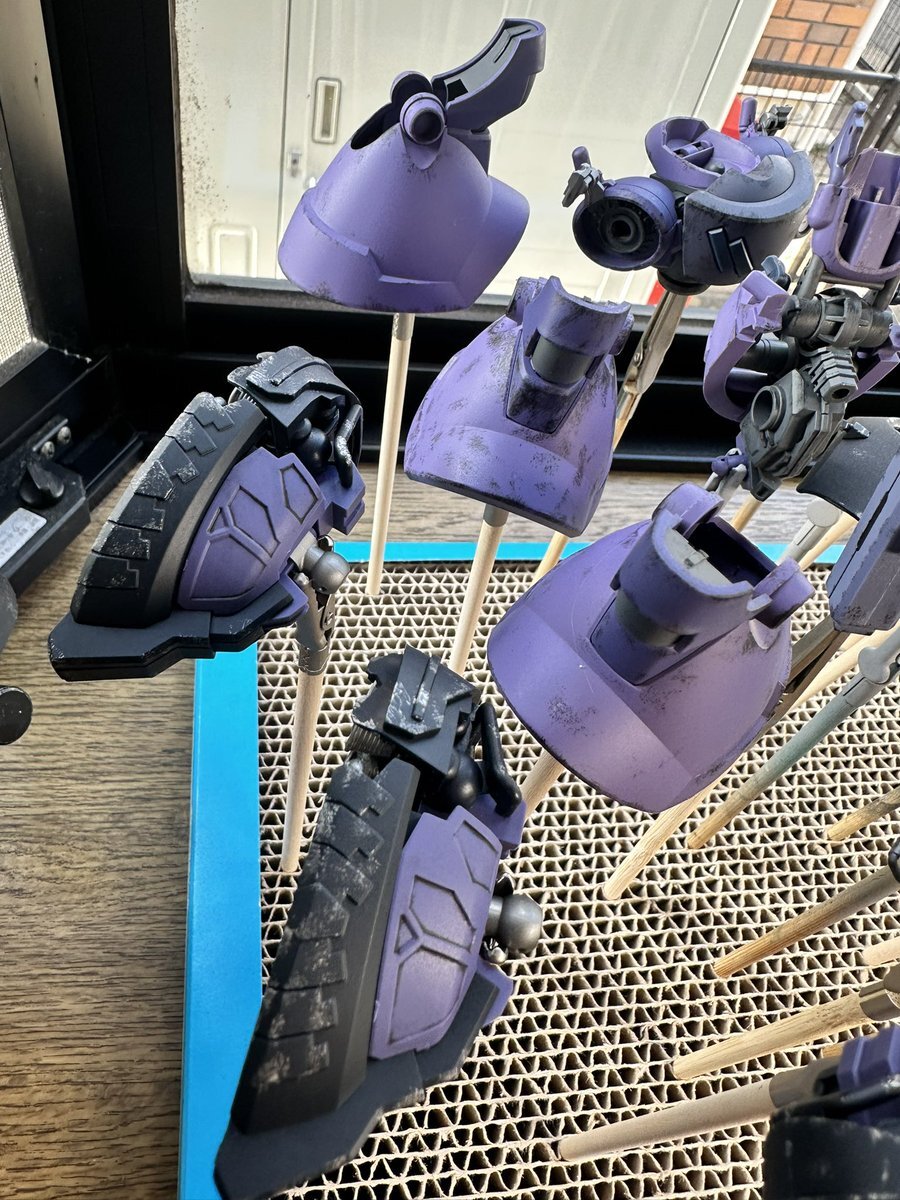トップコート吹き終えて、帰宅後に最終組立します(^_^) 今日も午後から仕事行ってきます🫡 #ガンプラ #リックドム #GQuuuuuuX #進捗状況 #せなすけ pic.x.com/TZkfhnPj0A