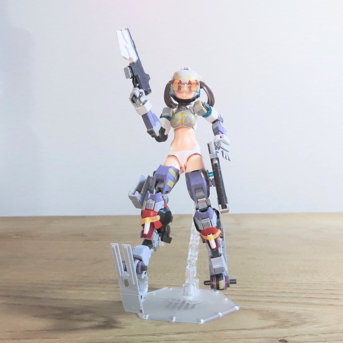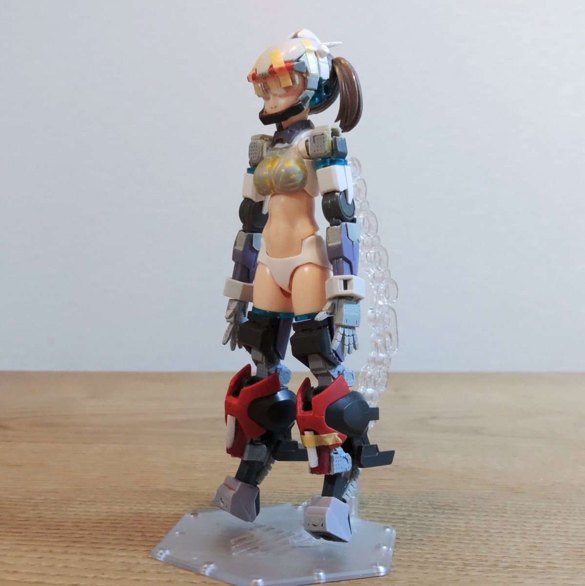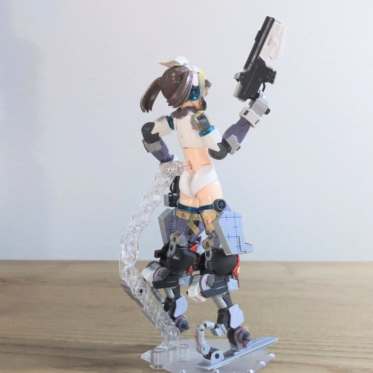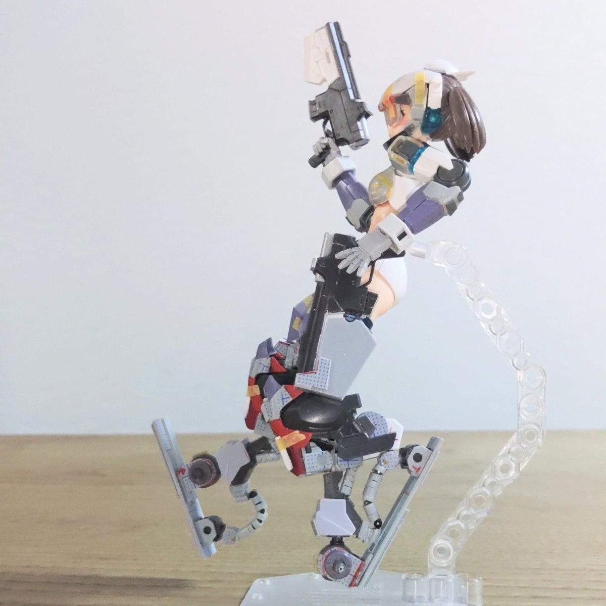 脚部の工作も大詰め。 ウォータージェット、給水ケーブルなど推進機構は大体出来たので、後はゲタ部分をジェットフォイルっぽくしたい。 元々ガンナーに付いてたジョイントパーツを利用してホルスター装着させた✨ #メガミデバイス #進捗状況 x.com/qemoui/status/… pic.x.com/SgLAIw4Dw4