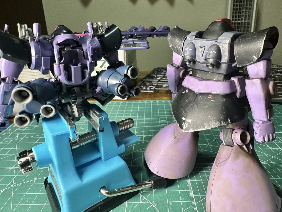 Rドム本体の組立完了…3本目の脚を背負っても元々どっしりしてるので問題なく自立します(^ ^)足首は訳あってまだ付けず、本体側も仮組状態です😐 皆様日曜日もお疲れ様でしたm(__)m #ガンプラ #GQリックドム #GQuuuuuuX #ドム #進捗状況 #お疲れ様でした pic.x.com/zz8IXBo4Uj