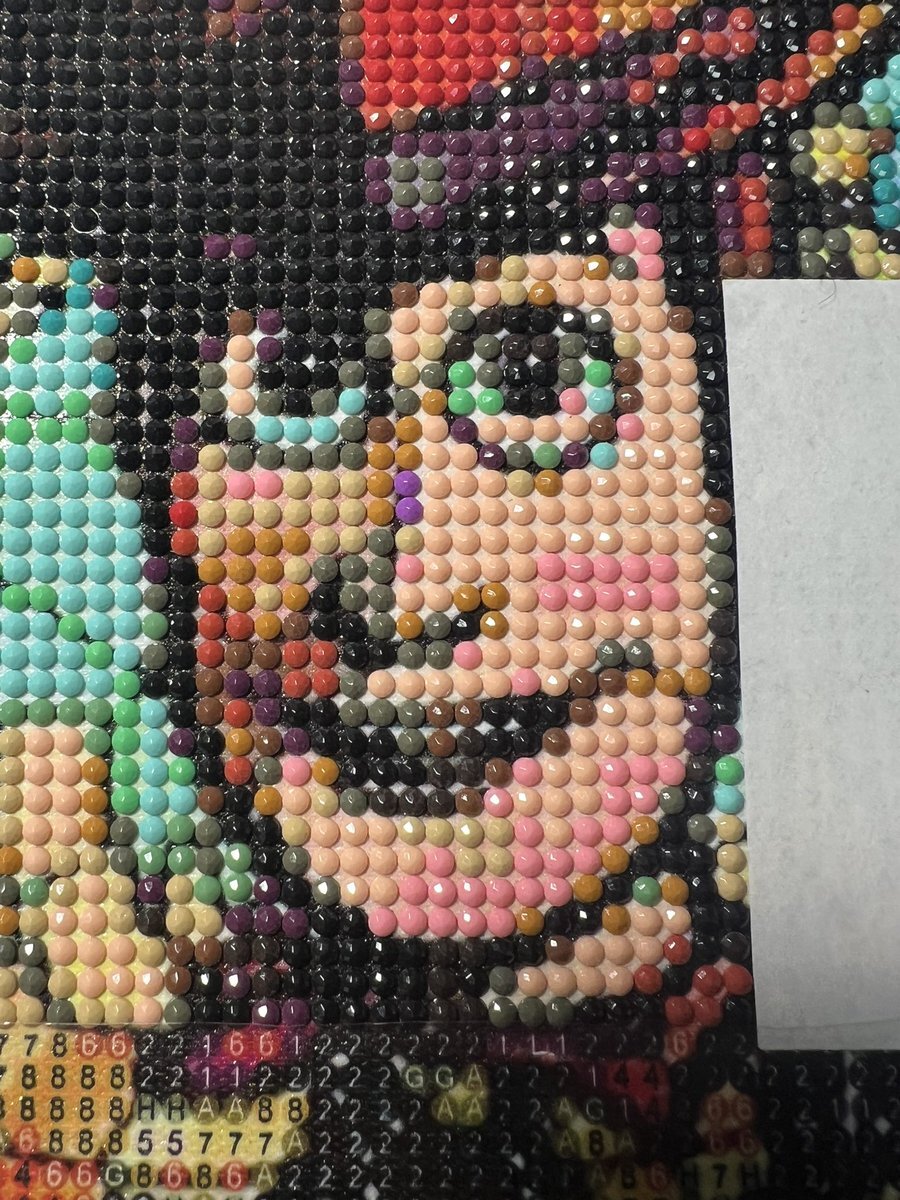 切り傷より擦り傷の方が治りが遅い事を身をもって知りました。そして、眼鏡の影が青アザだと言うことは私しか知らないはずです… #ダイヤモンドアート #進捗状況 #切り傷より擦り傷の方が治りが遅い pic.x.com/BuUA3zKA7D