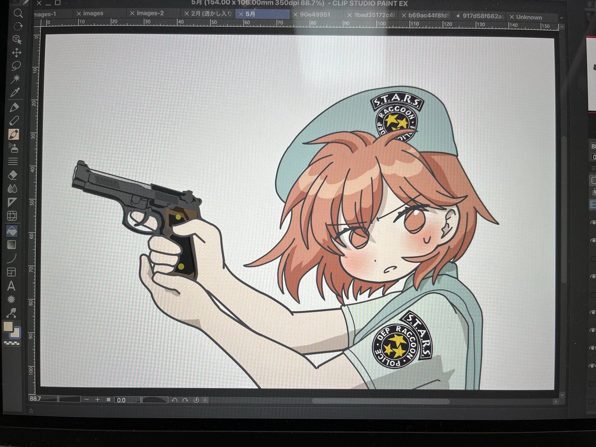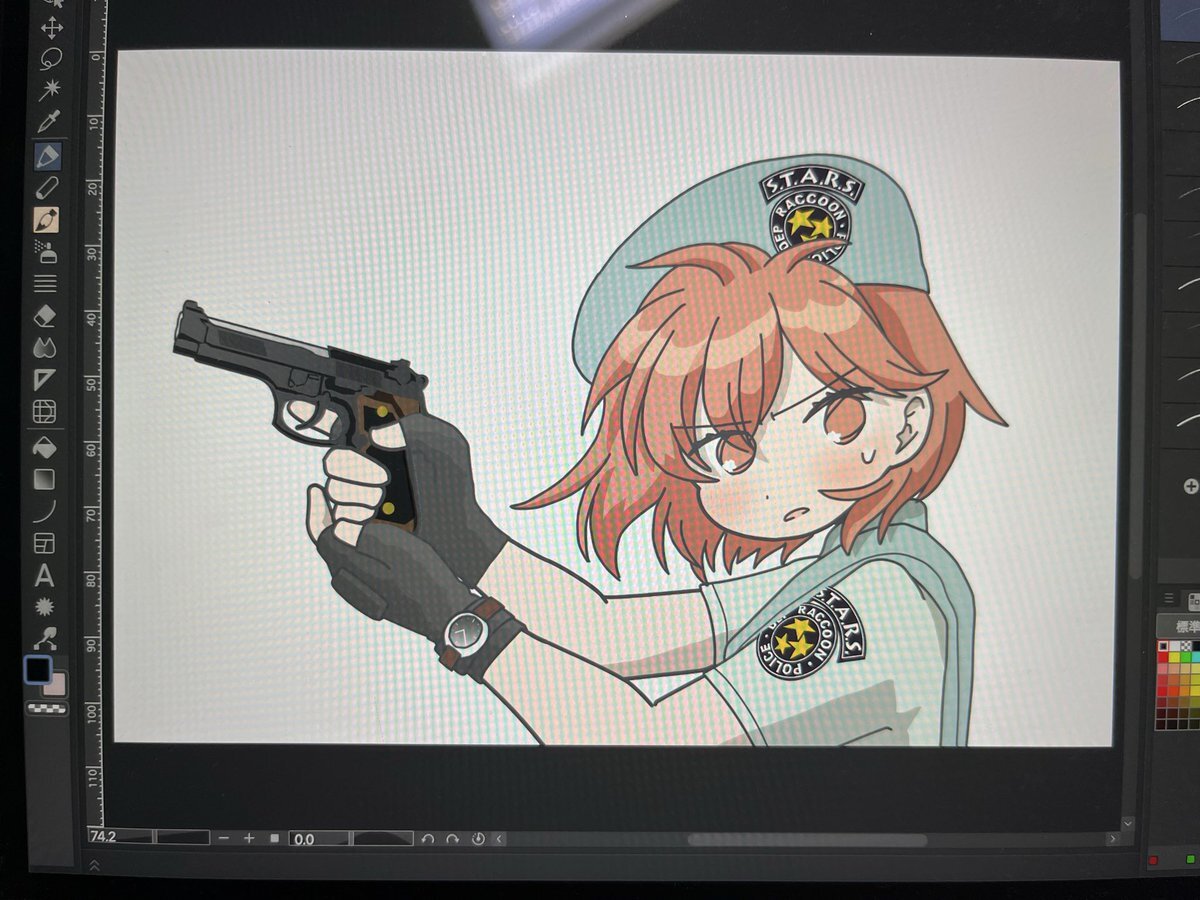 ここまで描けた!!! 銃……難しい…… ワッペン……難しい…… ゾンビと犬と怪物描いたら終わりっっ!!!!! #カレンダー2026 #作製中 #また遊びたいゲーム x.com/happax2/status…