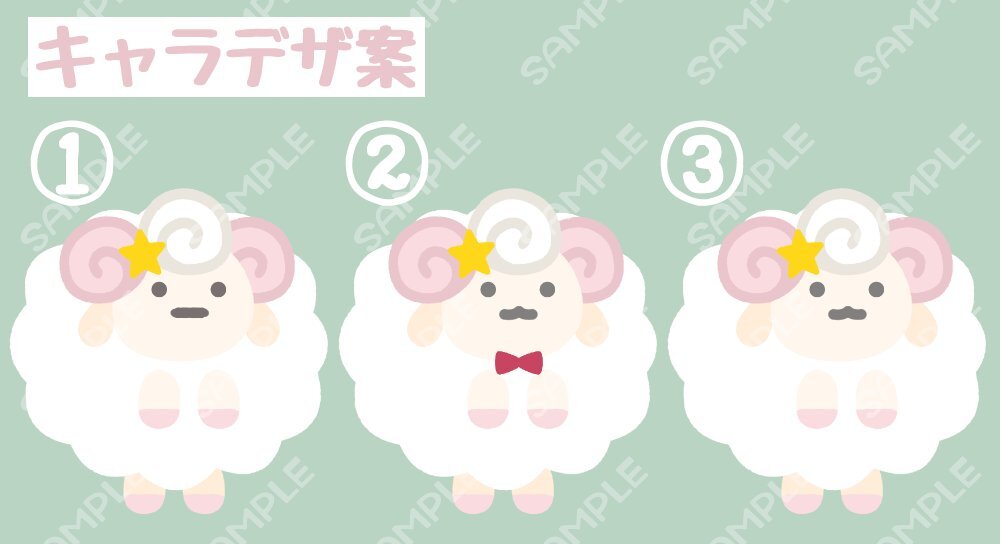 フォロワちゃんからアイコンの作成依頼が!やったー!可愛いの描くね!! #くりえいたーでべちゃん #進捗 キャラデザから承りました。とりあえずラフ案3種 すみっこちゃんが好きな方なのでそんな雰囲気に ご要望↓↓ 羊/毛は白/角は桜色/星・宇宙モチーフ/(ネクタイ・蝶ネクタイの装飾)/ユニセックス pic.x.com/Q7dYvQFWn6