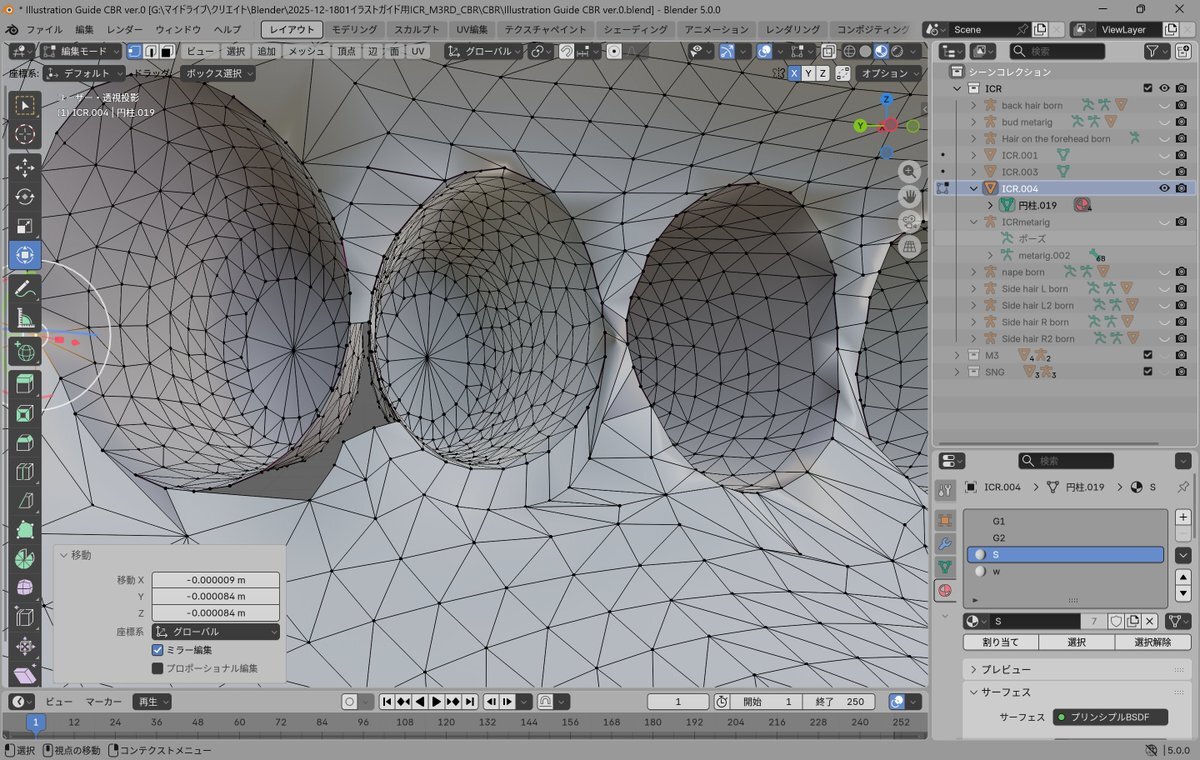 ちびろを素足にしたくて… 派生工作だし楽にやろうと手の指を分離させて作って(足はできた!) 手の指を元に戻そうとブーリアン合成したら失敗 頂点を整理して、ひと針ずつ縫うようにくっつけている… だいぶ閉じてきた、もう少し…….:⁝⁝ ⁝⁝:. #くりえいたーでべちゃん #進捗 pic.x.com/j8RIsbsLV1