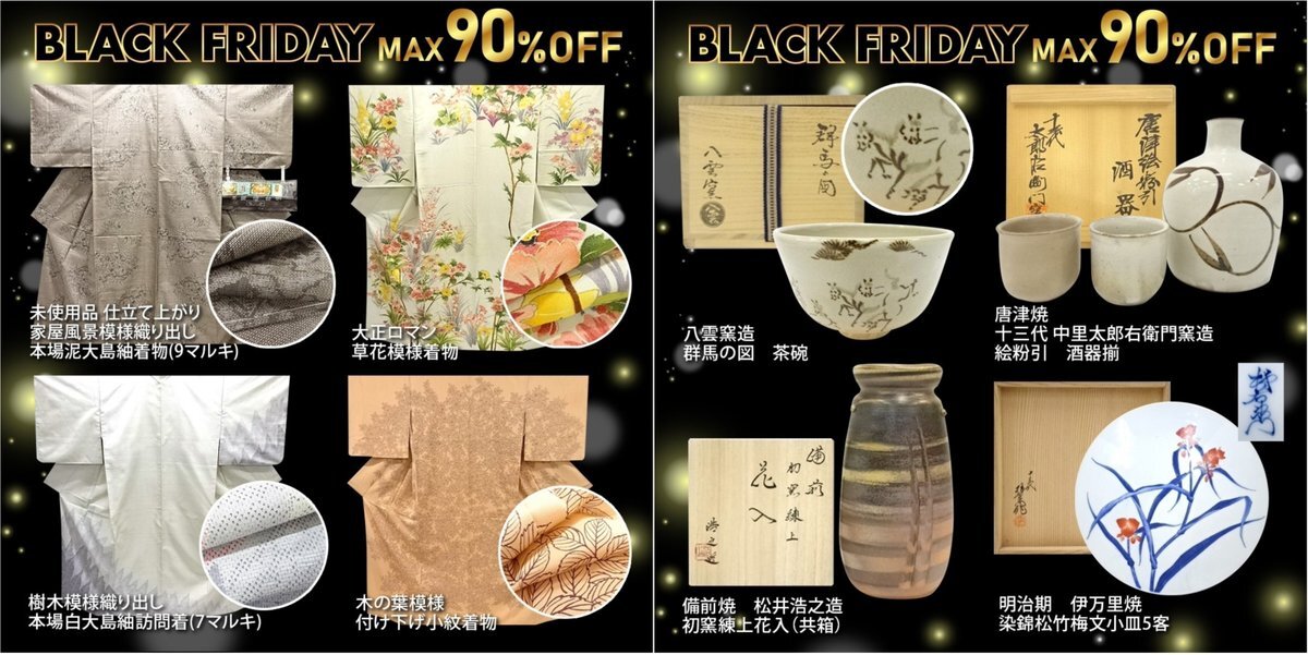 🖤BLACK FRIDAY🖤MAX90%OFF📣 大島紬👘大正ロマン、 備前焼🍵古伊万里など 逸品着物・帯・茶道具が5,000円~💕 ぜひ、宗でお気に入りの商品を さがしてくださいね😍 お待ちしております🎵 🔻セール購入がおすすめ🔻 🔍️net-qp.com/smb/ #ブラックフライデー #逸品 #着物 #茶道具 pic.x.com/YG9Ac57f1H