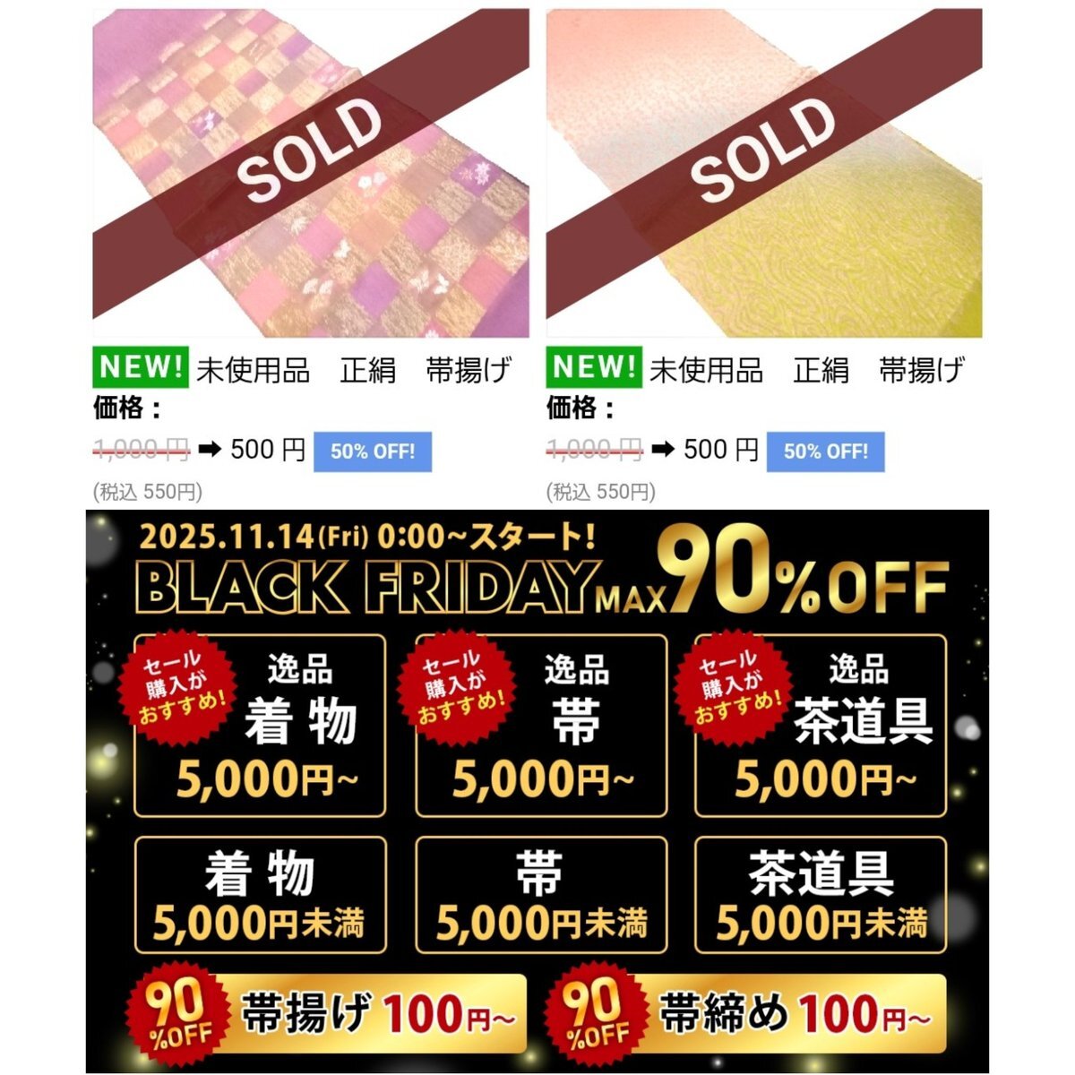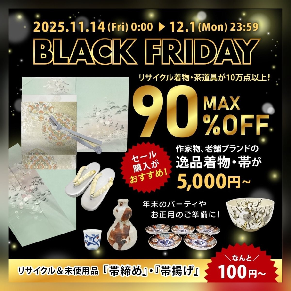 \BLACK FRIDAY/開催中📣 MAX90%OFF❗ 帯揚げ、帯締めは100円~👀✨ 逸品着物・帯が5,000円~💕 新着商品もチェックしてくださいね🎵 売り切れが多数😭 お急ぎくださいね💨 🔻🔻 net-qp.com/smb/ #ブラックフライデー #逸品 #着物 #茶道具 pic.x.com/u8bILnsH99