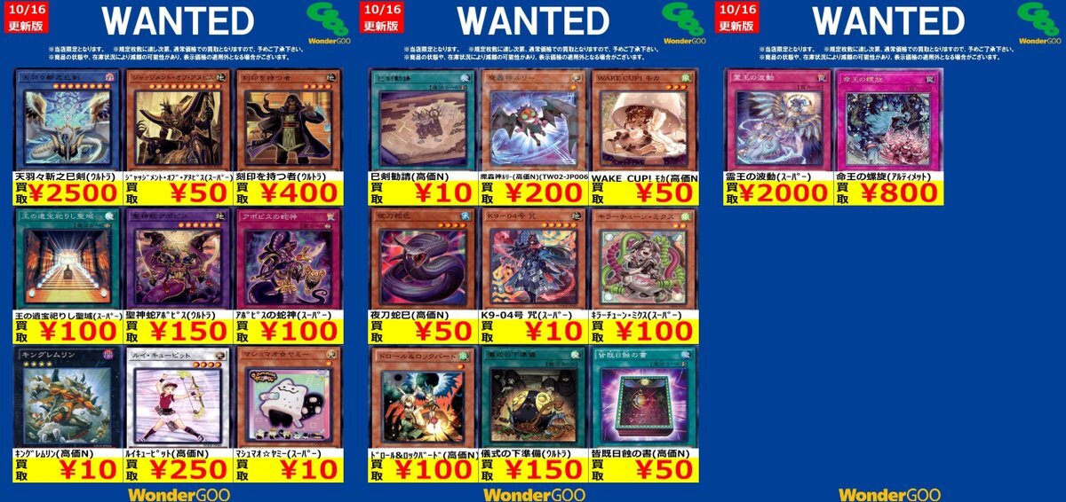 ☆八街店限定WANTED☆ #遊戯王カード 10/17 10:00時点 ※傷無しでの価格となります ※在庫が集まり次第通常買取価格となります ※予告なくお値段が変動する場合がございます ※お電話等でのお問い合わせはお受けできません #ワングー #千葉 #トレカ #買取 pic.x.com/oEzwkZECmV