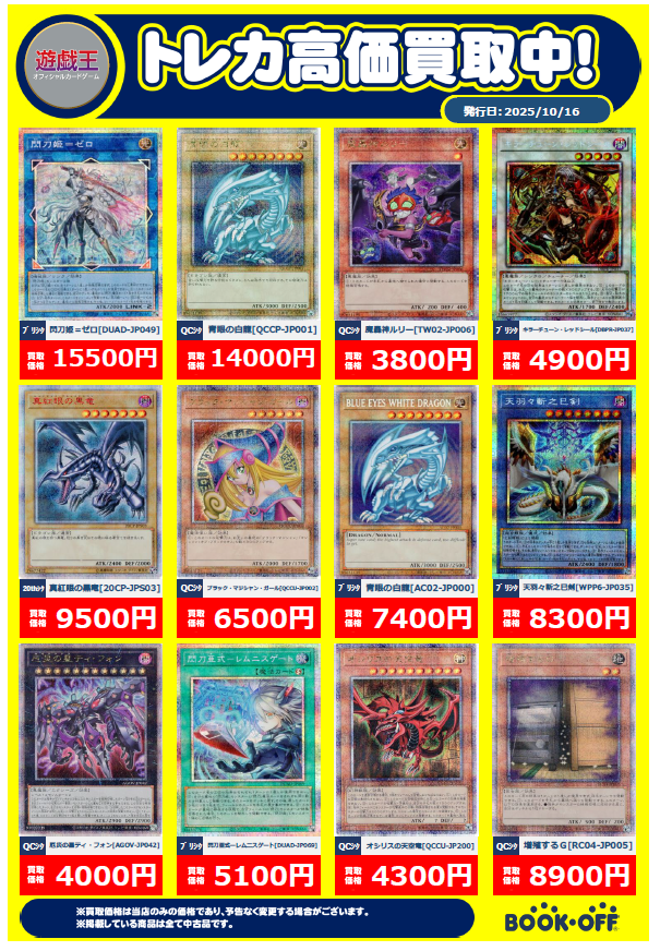 【中古トレカ高価買取情報】 #遊戯王カード 今週の遊戯王カード高価買取情報になります #閃刀姫ゼロ プリシク 15,500円 など リスト以外のカードも買取しておりますので、ぜひ当店にお持ち下さい!! #ブックオフ #トレカ #遊戯王 #買取 pic.x.com/11e3ljKezP