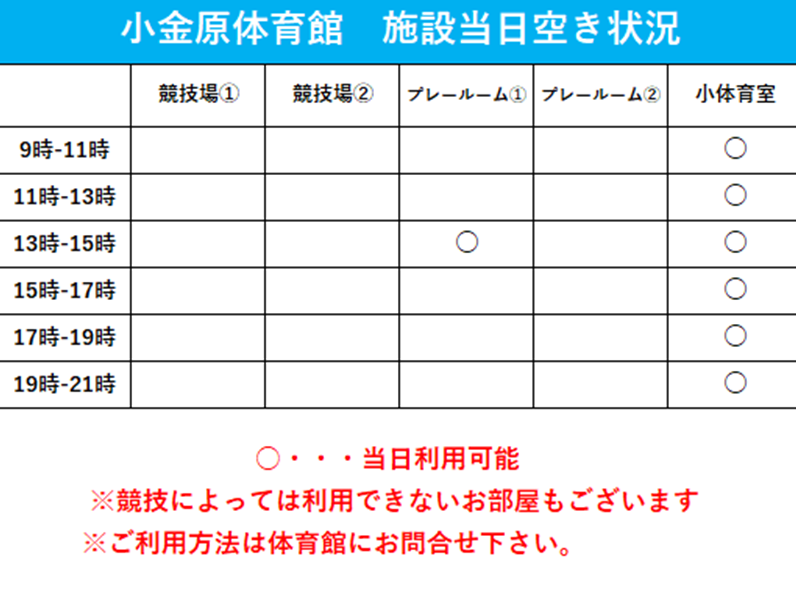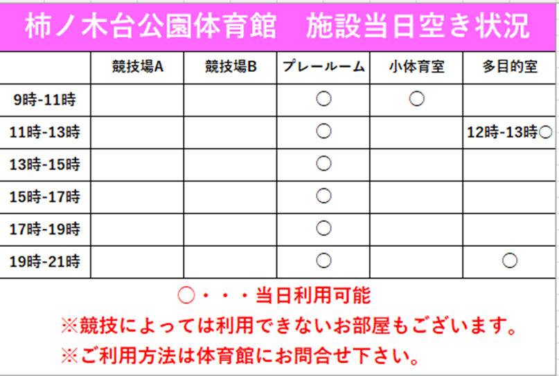 11月15日(土曜日) おはようございます☁小金原体育館 本日の一般開放です。 本日、プレイルームは卓球日です🏓 皆様のお越しをお待ちしています。 #体育館 #卓球 #バスケットボール #バドミントン #柿ノ木 #一般開放 #空手 #体操 #運動 #プレイルーム #小体育室 #競技場 #ヨガ pic.x.com/cbSMUVn0V6