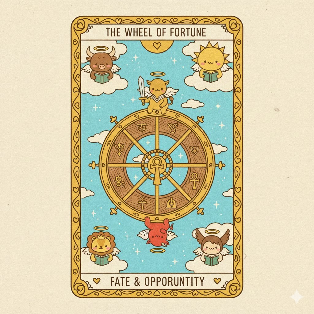 最近、少し止まっているように感じていたことが ゆっくりと、でも確実に動き出しそうです。 自分を言じて、流れに乗ってみましょう✨ 偶然のようで、きっと意味のある出来事があなたに訪れます✨ 実はこのカード、たくさん使い込んで、もう少しで"魂が宿りそうです😊笑 #運命の輪 #タロット pic.x.com/m1KnSwQPPX