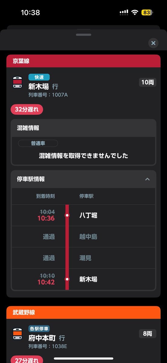 JR今日どうした… #京葉線#八丁堀駅 で人身事故で #運転見合わせ もうすぐ復旧と思ったら今度は #中央線 #武蔵小金井 で人身事故…