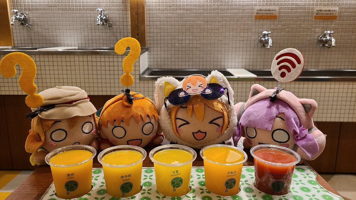 #愛媛県 の最後の夜には #道後 へ 坊っちゃんコンテンツやみかんジュースとか色々で楽しかったにゃよ >ω</♨🍊 #やったにゃ凛ちゃん #旅する凛ちゃん #高海千歌 #国木田花丸 #安養寺姫芽 #寝そべり pic.x.com/5D3R3Y8O6G