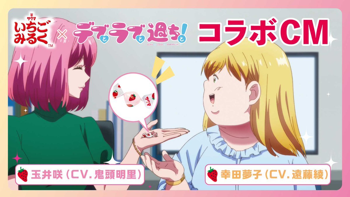 / アニメ #デブラブ × #いちごみるく コラボCM公開🍓🩷 \ 夢子ちゃん(CV.#遠藤綾)と玉ちゃん(CV.#鬼頭明里)が出演🍭 CMを見て、みなさんもぜひ、いちごみるくをシェアしてみてください🍓🤍 ⬇️CMはこちら⬇️ youtube.com/watch?v=3tsIw9… アニメ「デブとラブと過ちと!」は毎週月曜放送&配信中! pic.x.com/PuxYp2bKIc