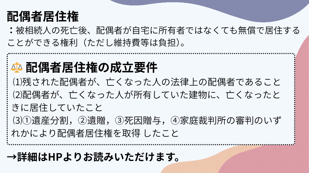 配偶者居住権1 ✅「配偶者居住権」「短期居住権」って何? ──相続後も“住み慣れた家にそのまま暮らせる”ための制度です。 仕組みや実務でのポイントをわかりやすく整理しました。⇒sozoku-jigyoshokei-ma.jp/column/will/po… #弁護士 #相続 #遺産 pic.x.com/nA2DeY4zqy