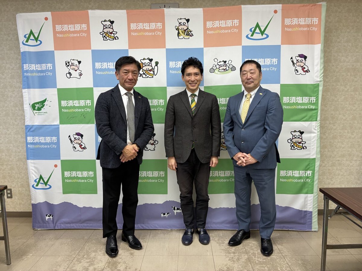 【表敬訪問のお知らせ】 本日 #那須塩原市 を訪問しシーズン終了のご報告と温かいご支援への感謝をお伝えするとともに、来季に向けた抱負をお話ししました。 訪問先:那須塩原市 渡辺美知太郎 様 訪問者:代表取締役社長 江部達也     本部長 坂巻博志 #栃木ゴールデンブレーブス pic.x.com/0EiausLtQT