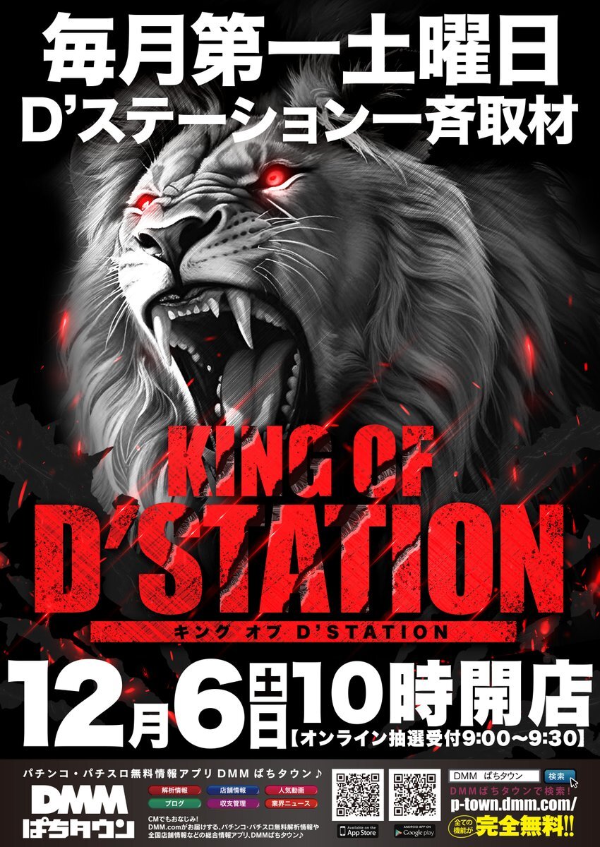 12月6日(土) 午前10時開店🕙 📷DMMぱちタウン取材📸 💥KING OF D'STATION🦁 店舗のプライドをかけた 熱い戦いふたたび🔥 2025年最後の戦いに 全力で挑みます💥 もぐ美テンチョの最新Xも要チェック🐼 ⏩@mogumogu_tencho⏪ 本日総付景品もあります🍜 朝からのご来店を お待ちしております✨
