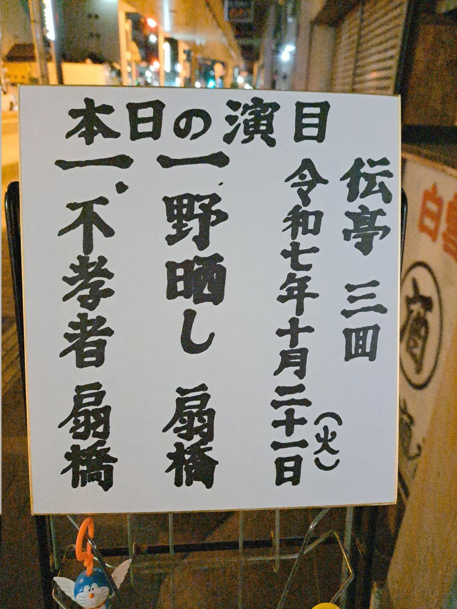 終演 落語🔰が多い20人ほどの小さな箱で、アウエー感いっぱい。しかし #野ざらし で客を笑いの渦に巻き込み、「普段やらない噺」と言いながらの #不孝者 でホロリとさせられた。1時間強だったが、#扇橋 師匠を堪能した。 #岐阜市 #伝亭 pic.x.com/kLe88WALsV