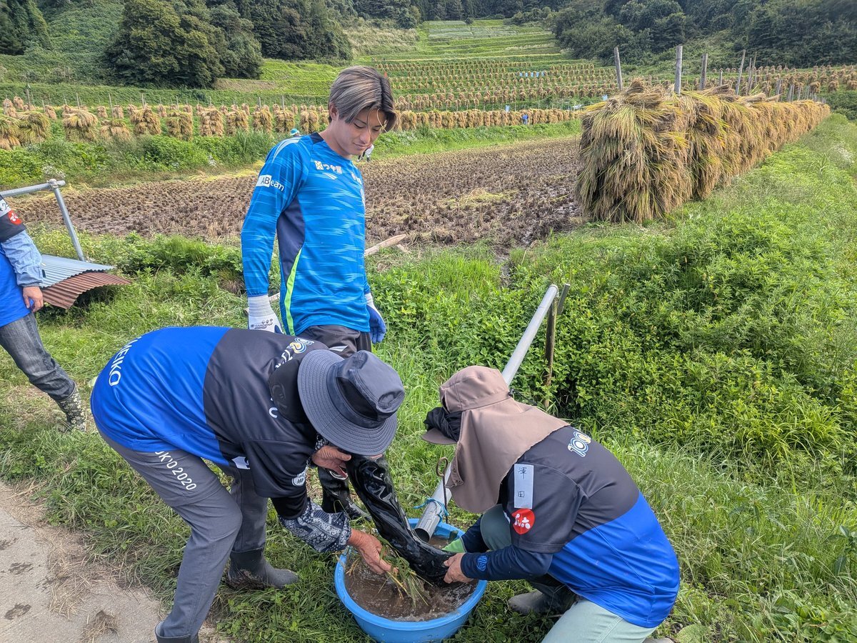 そして本日のメインディッシュ やまびこガールズの長靴洗いw🥳 今回鶏姉さんはこれを見る(撮る)為だけに参加したと言っても過言ではないw🤗 #田中渉 選手もノリノリで喜んで応じてくれたw🤭 これでJ1昇格間違いなしだ!🐔🐤🐦️ 「足ケガすねようにして頑張ってケロな🐸🌈」 #やまびこ隊 #山形一丸 x.com/chicken2939/st…