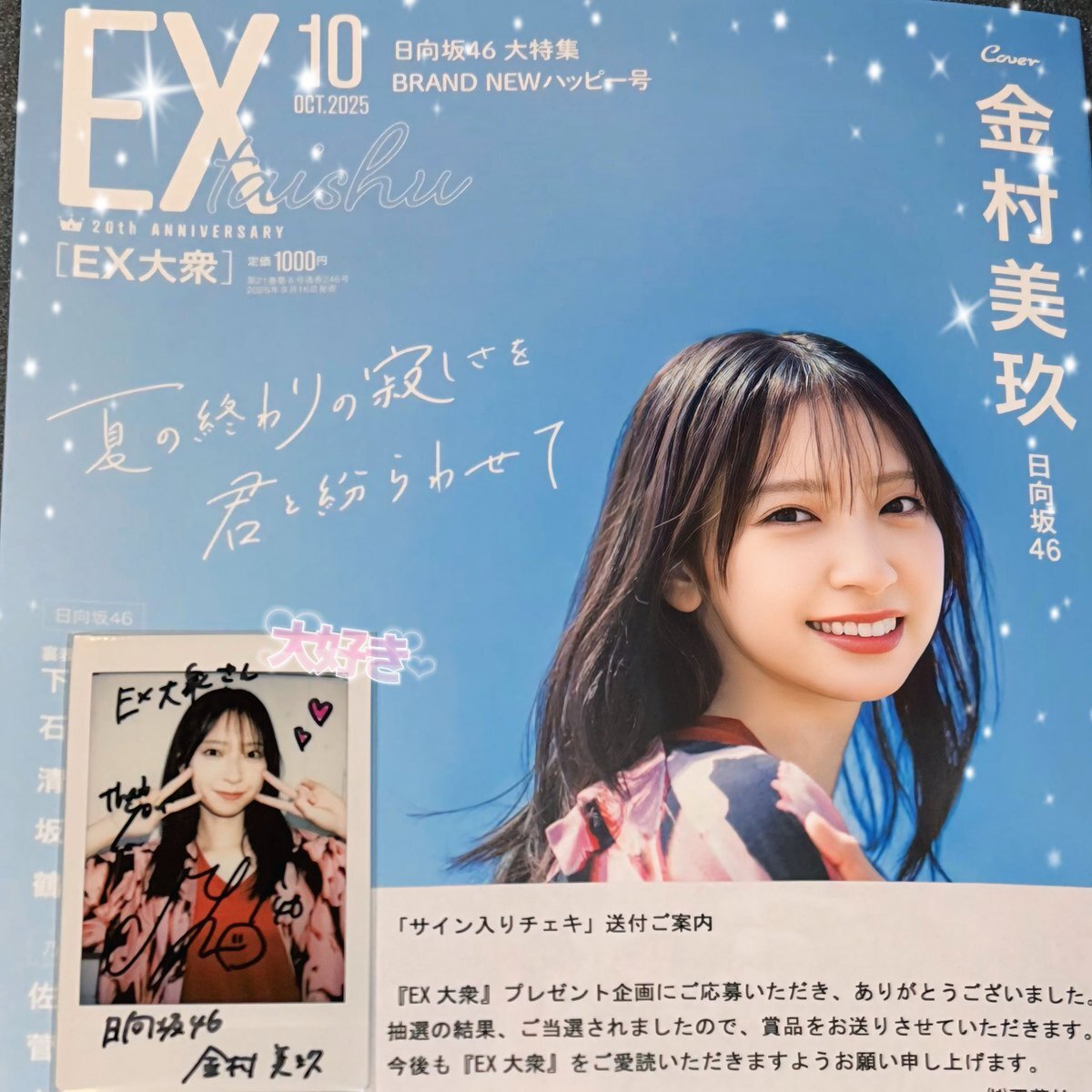 美玖が表紙を務めたEX大衆10月号の チェキ当選しました〜! しかも表紙衣装で嬉しすぎ😭💕 インタビューも充実してて本当に素敵な1冊です! ありがとうございました🙇♀️ 大切にします🫶 #EX大衆 #金村美玖 pic.x.com/0Vbtw35B7Q