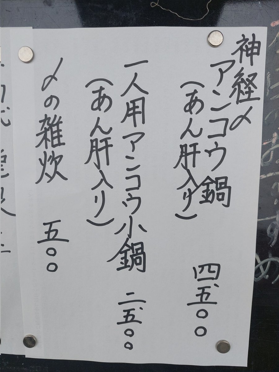 昨日に引き続きアンコウ鍋あります 大きめのシラスを使って塩辛を作りました お酒のあてにどうぞ 天ぷらネタはアナゴ、シロギス、海老、スルメイカ、小鯛が入ってます マダラ白子も入荷しましたのでポン酢でお召し上がりください #さしみの店さかなや #金沢八景 #海鮮居酒屋 #日本酒 #ひとりなべ pic.x.com/23lPCiOg4n