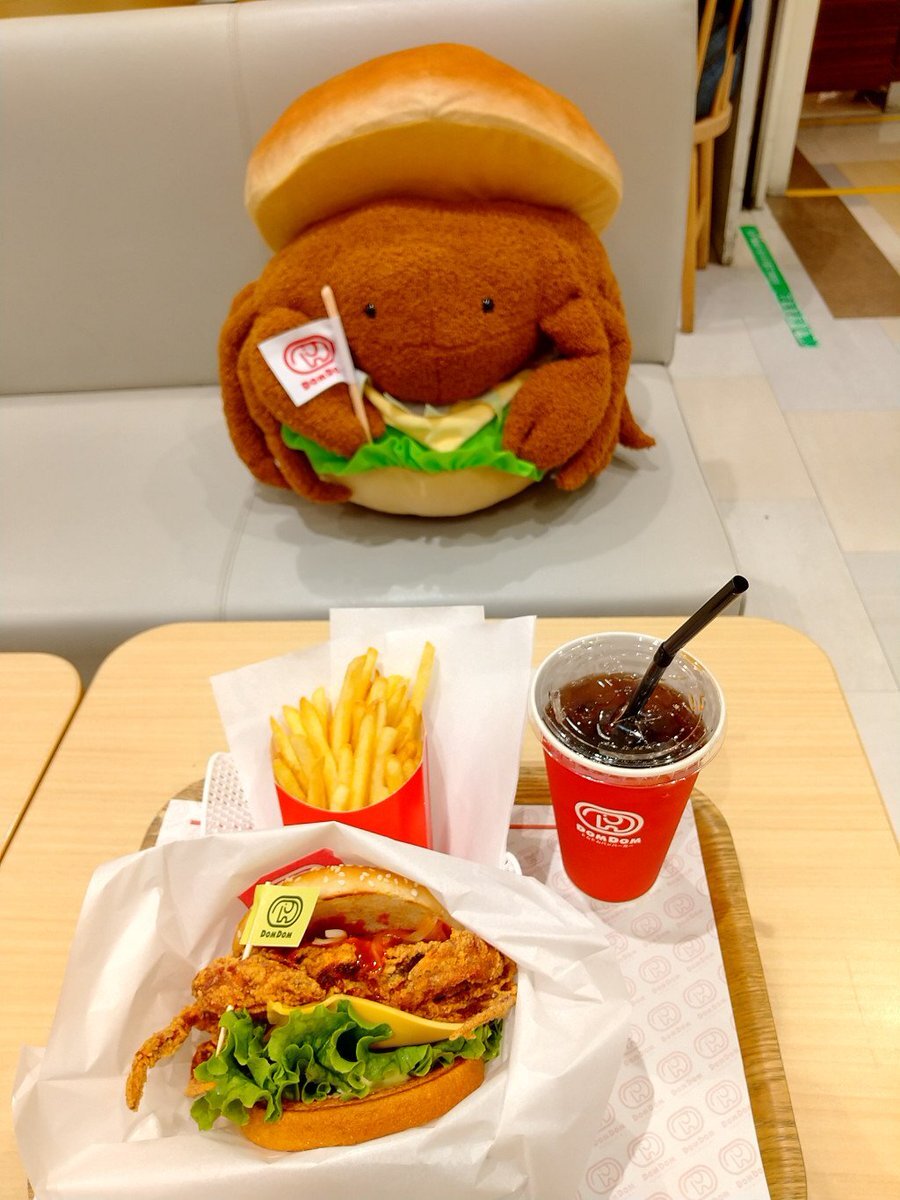 降水確率0%の日が来たので、カニバーガーちゃんを連れて海に近いドムドム金沢八景店で丸ごとカニバーガーを食べてきた🦀 #ドムドムハンバーガー #ドムドム #金沢八景 #海の公園 #金沢区 pic.x.com/igyvVl8R8g