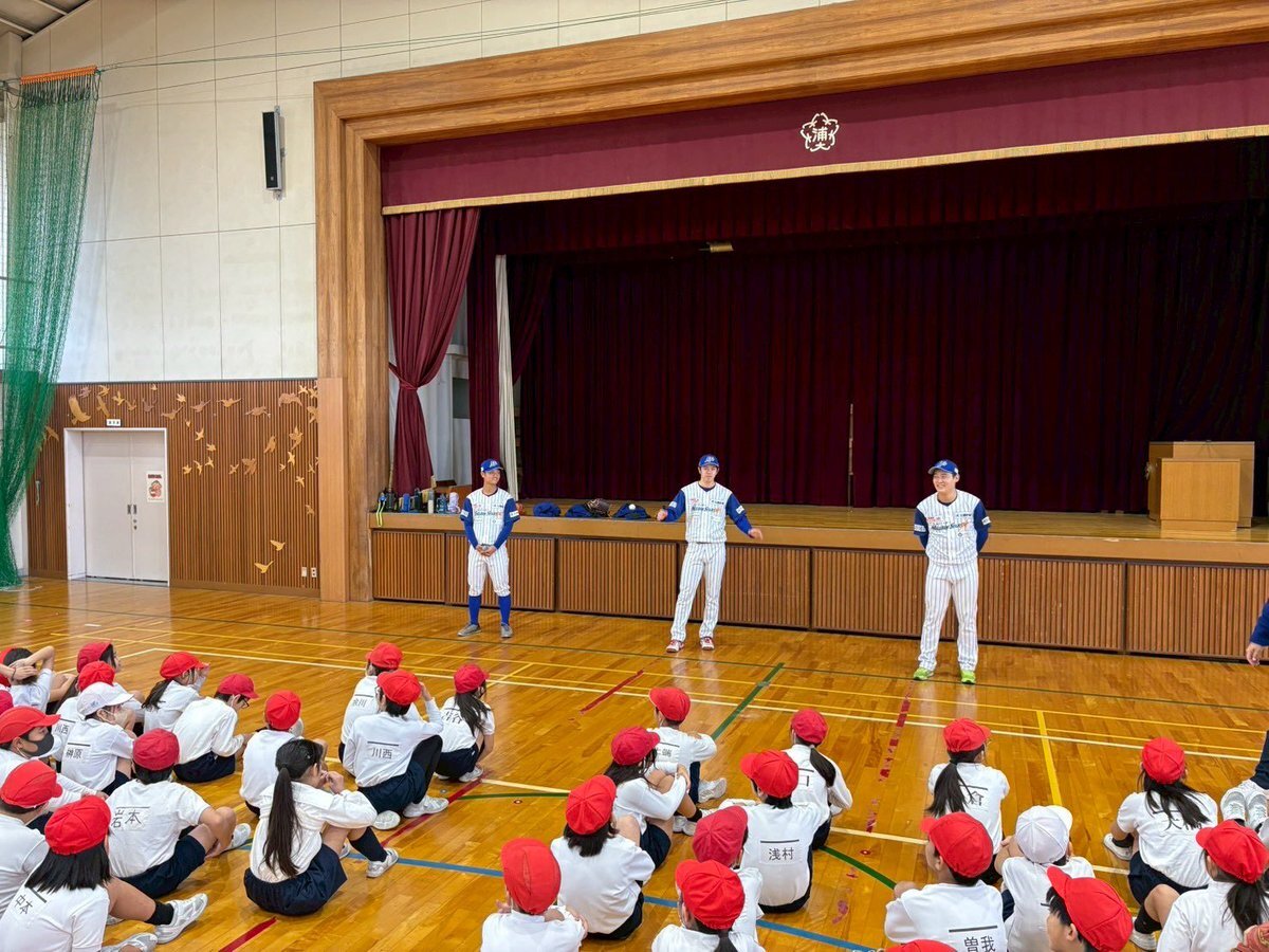 🌟プロスポーツ出前教室@金沢市立大浦小学校 金沢市主催の出前教室に #浜新之介 投手、#藤井大智 投手、#高本天也 選手が参加し「投げ方」・「打ち方」のコツなどを指導しました⚾️ 本日はありがとうございました🙇‍♂️ #石川ミリオンスターズ #金沢市 #日本海リーグ #NLB #頑張ろう能登 #がんばろう石川 pic.x.com/cFWdQBsLJ7