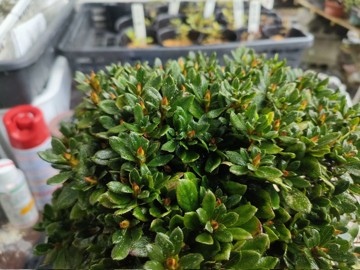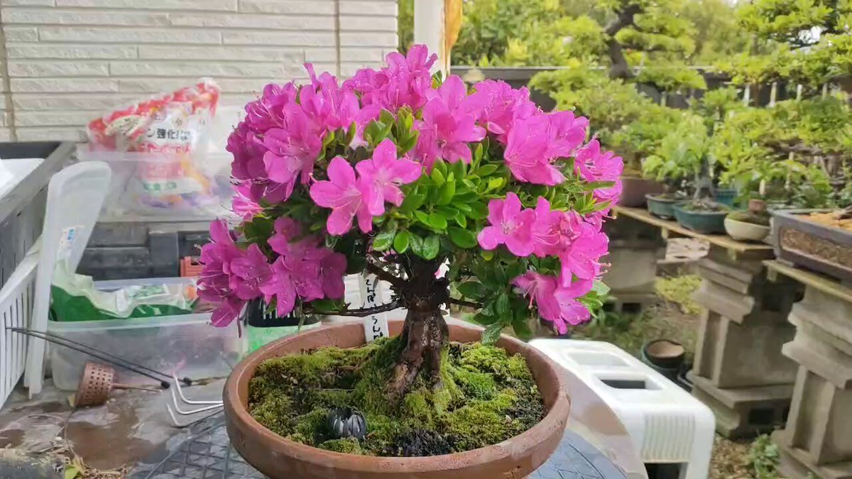 #盆栽 #さつき #金盃 (仮)きんぱい まだまだ棚を作っていかないといけないのでしばらくは駄鉢にいていただきますが、花咲きたがりというか今年もたくさん咲きました(*^^*) 写真の通り来年の蕾もびっしり発射準備完了状態になっています✨️ #BONSAI #サツキ pic.x.com/ftGh4EI91e x.com/0y38KcxhlO4T0v…