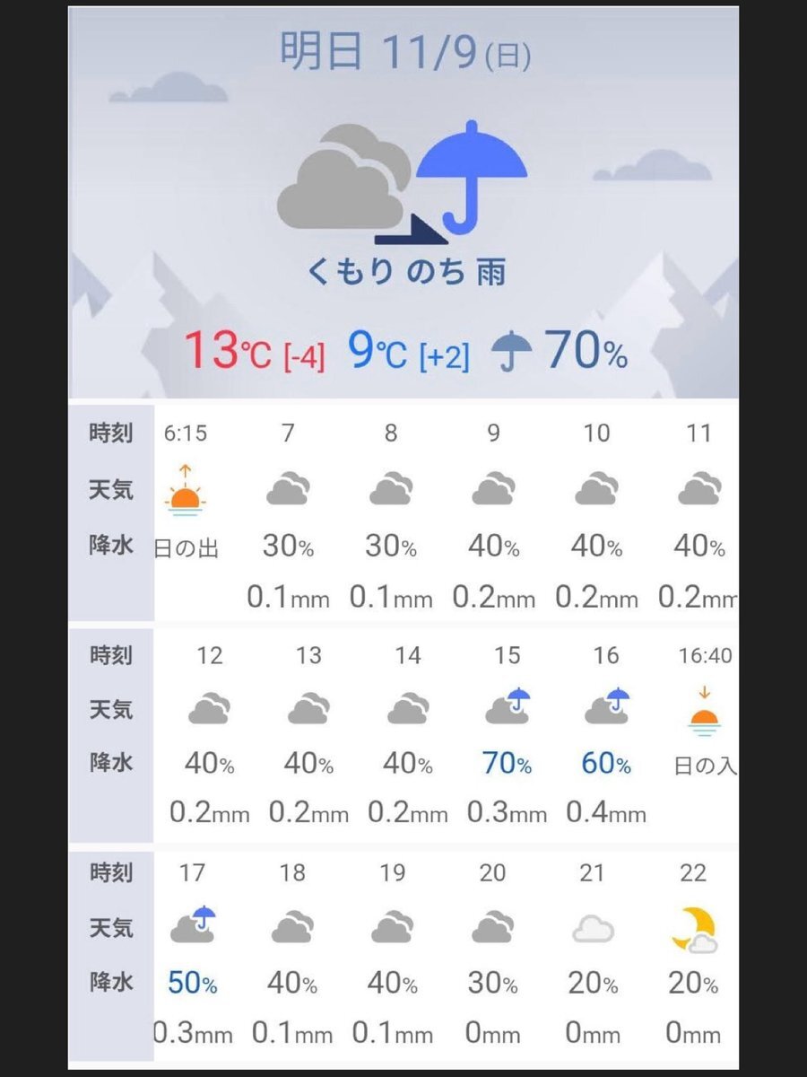 📢【お知らせ】 明日11月9日(日)は「くもりのち雨」の予報ですが、大きな天気の崩れはなさそうですね!☁️🌂 気温は最高13℃、最低9℃の予想。 少し肌寒い一日になりそうなので、暖かい服装でお越しください🎣✨ #宮城アングラーズヴィレッジ #MAV #天気情報 #釣り日和 #エリアトラウト pic.x.com/AeepUHoaLs