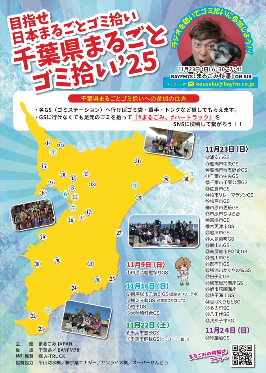 日本まるごとを目指し開催する『#千葉県まるごとゴミ拾い'25』が11月9日からスタートしています。 11月16日(日)は #南房総市千倉町 #横芝光町、#柏市、#銚子市 にてゴミ拾いが行われます。 南房総市千倉町は産業まつりとコラボ。ゴミ拾い時間がお祭り終了時の15時からに変更となっております。 pic.x.com/dUeuPbVGeW