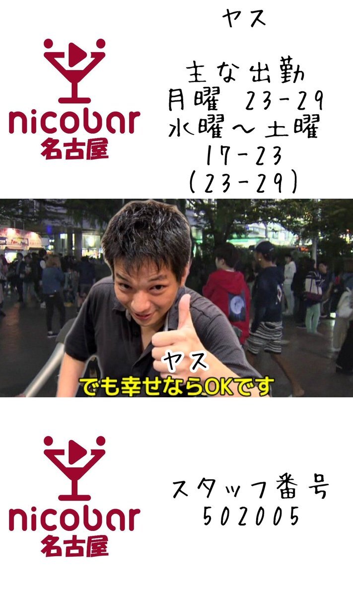 ☀10.17(金)前半スタッフ☀ 18時〜翌朝5時まで営業中! 18-23 ヤス @yasu_nicobar 19-23 うすい @NBN_us 今月のカレンダークーポン📣 700円以内の料理一品無料🍴 #名古屋 #栄 #錦 #錦三 #飲み放題 #一人飲み #喫煙可 #栄コンカフェ #錦コンカフェ #Mixコンカフェ #ダイニングバー